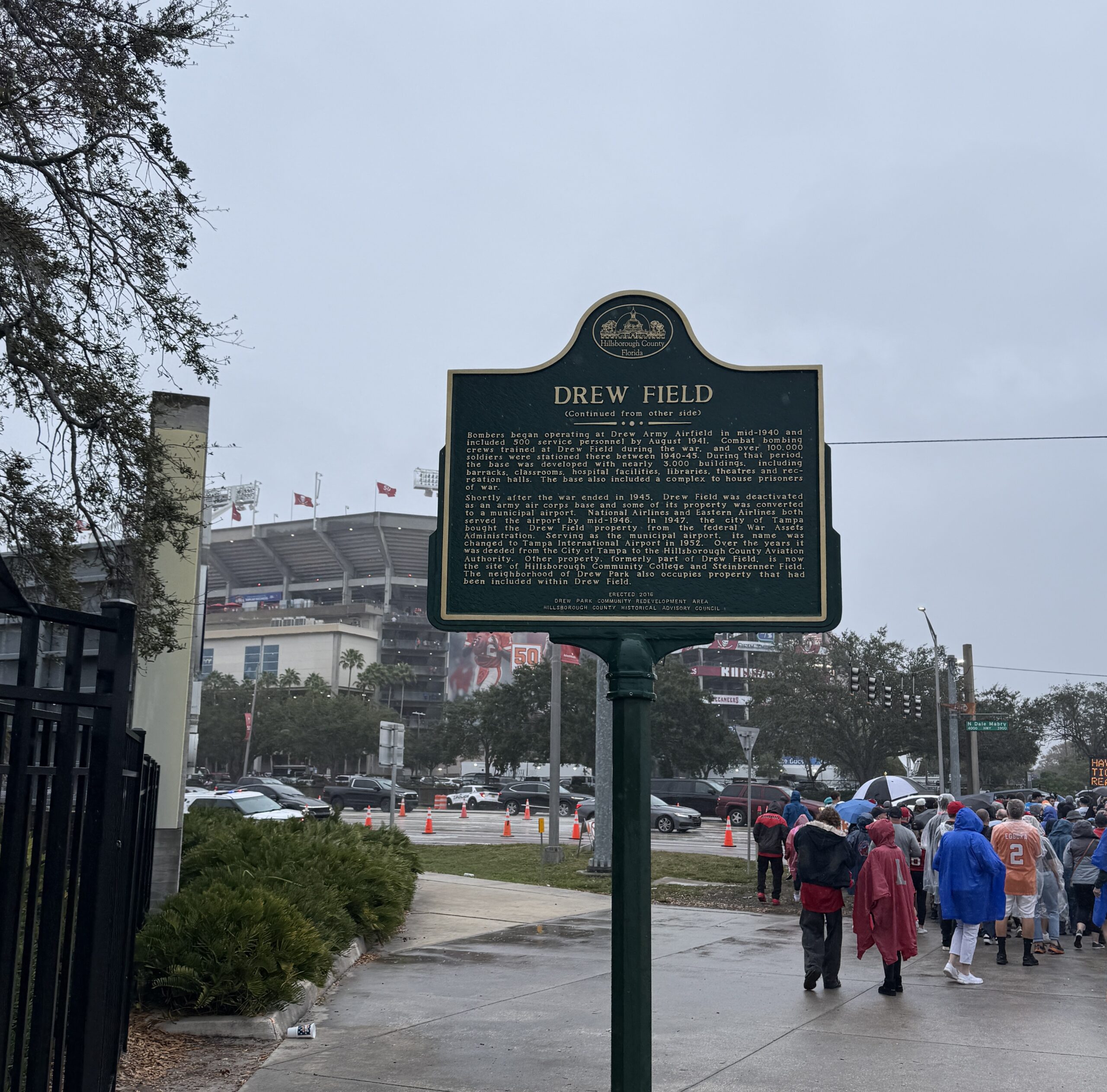 Built on part of the former Drew Field, the stadium opened in 1998, seats 69,218, and serves as the home field of the Tampa Bay Buccaneers as well as the University of South Florida (USF) Bulls.