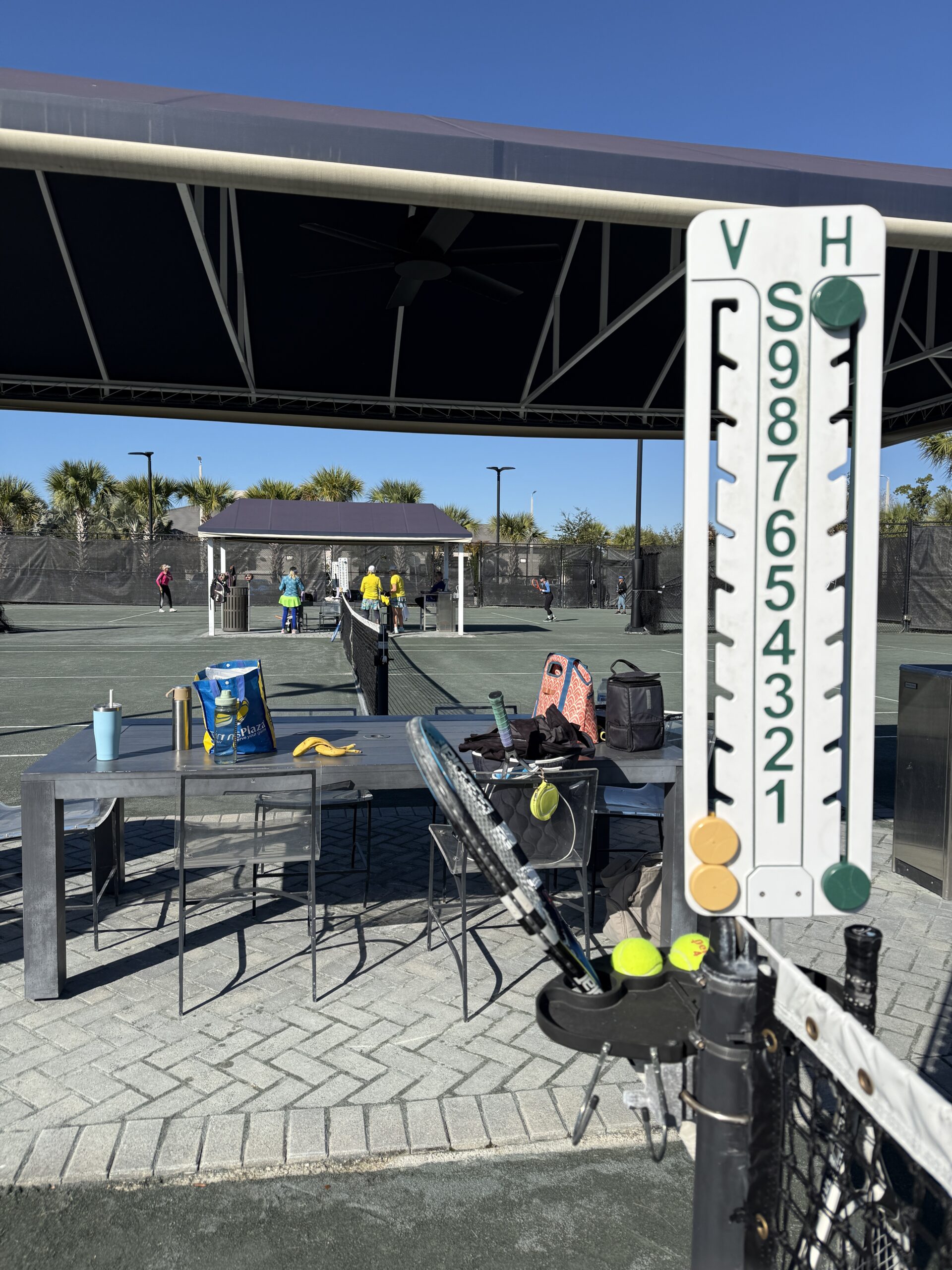 30 minutes before the start, Coach is waiting for his new students, and asks me if I’d like to hit. I declined because I wanted to practice a few serves.
