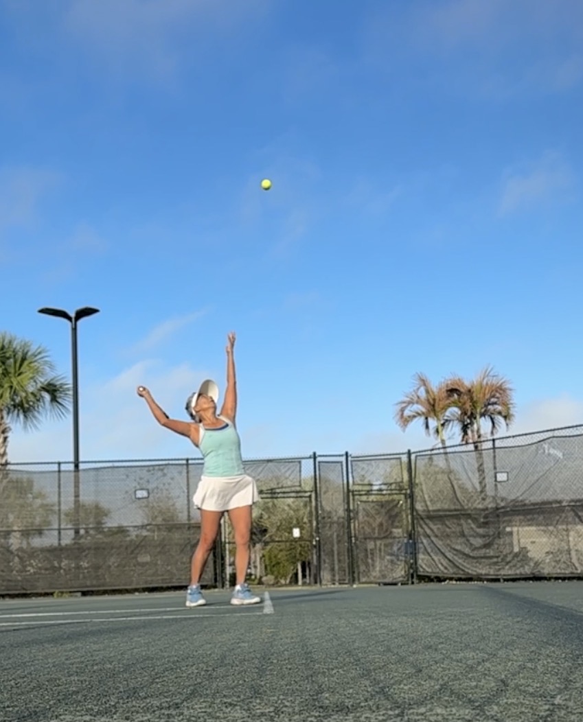 Practicing with my new partner, Rebecca, for our Wednesday Alot league match #4.