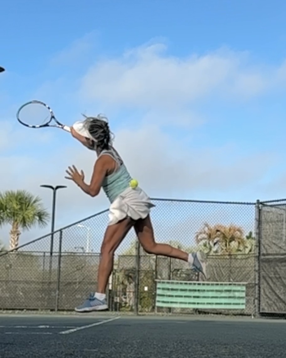 A long while ago, Nina asked me to play singles, and because we couldn’t align time, that was it. I see her practice all the time: low and deep forehand. Today, it’s my first time playing her: weak serve and doesn’t move, which isn’t an advantage in a singles game.