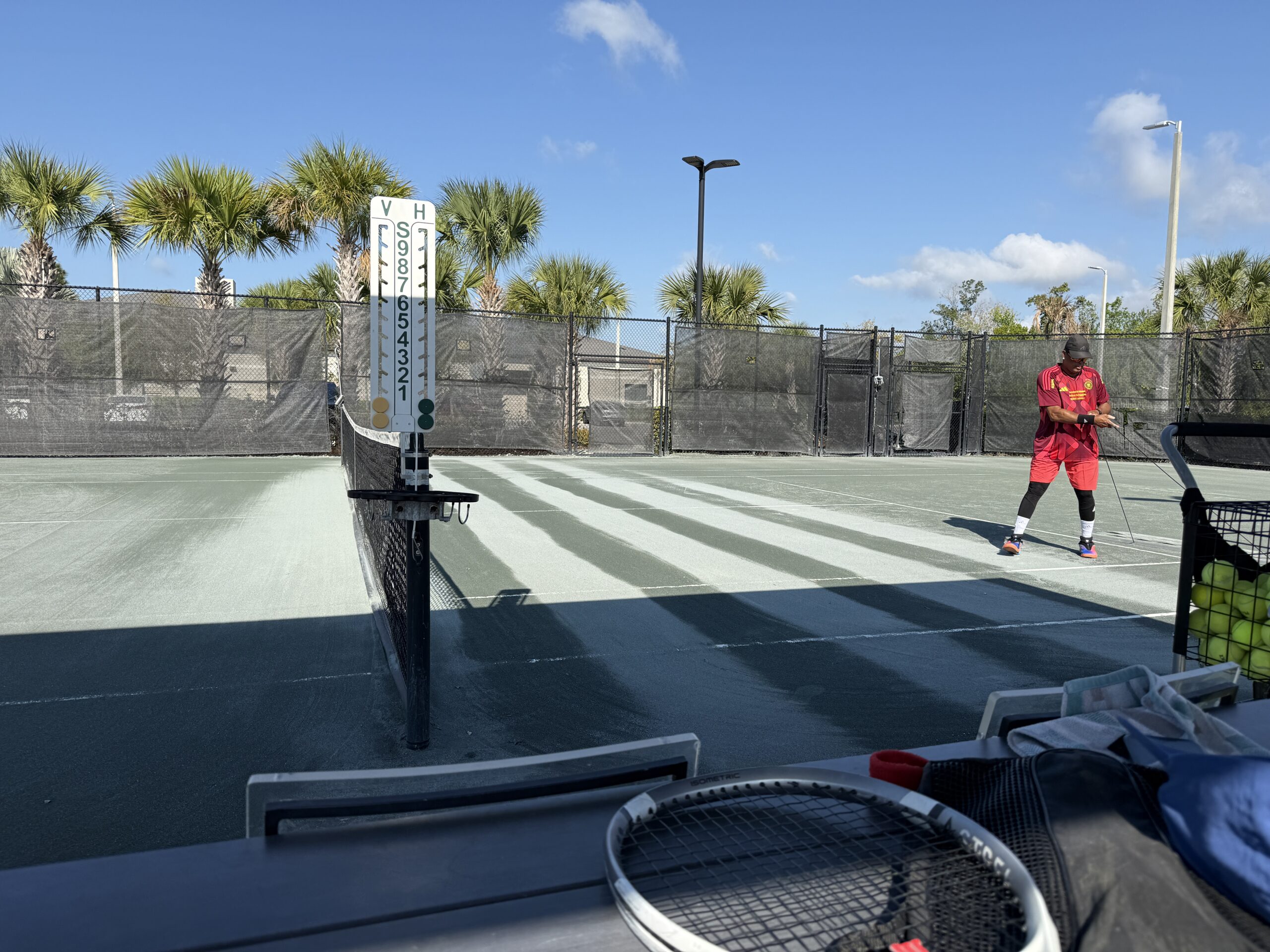 Then, I practiced on court. When the play finally began, it’s 9 already. The first set Tony and I won convincingly or Joel and Gordo. But the second set we lost to Dave L and Matt: I was tired, but able to hold my two service games.