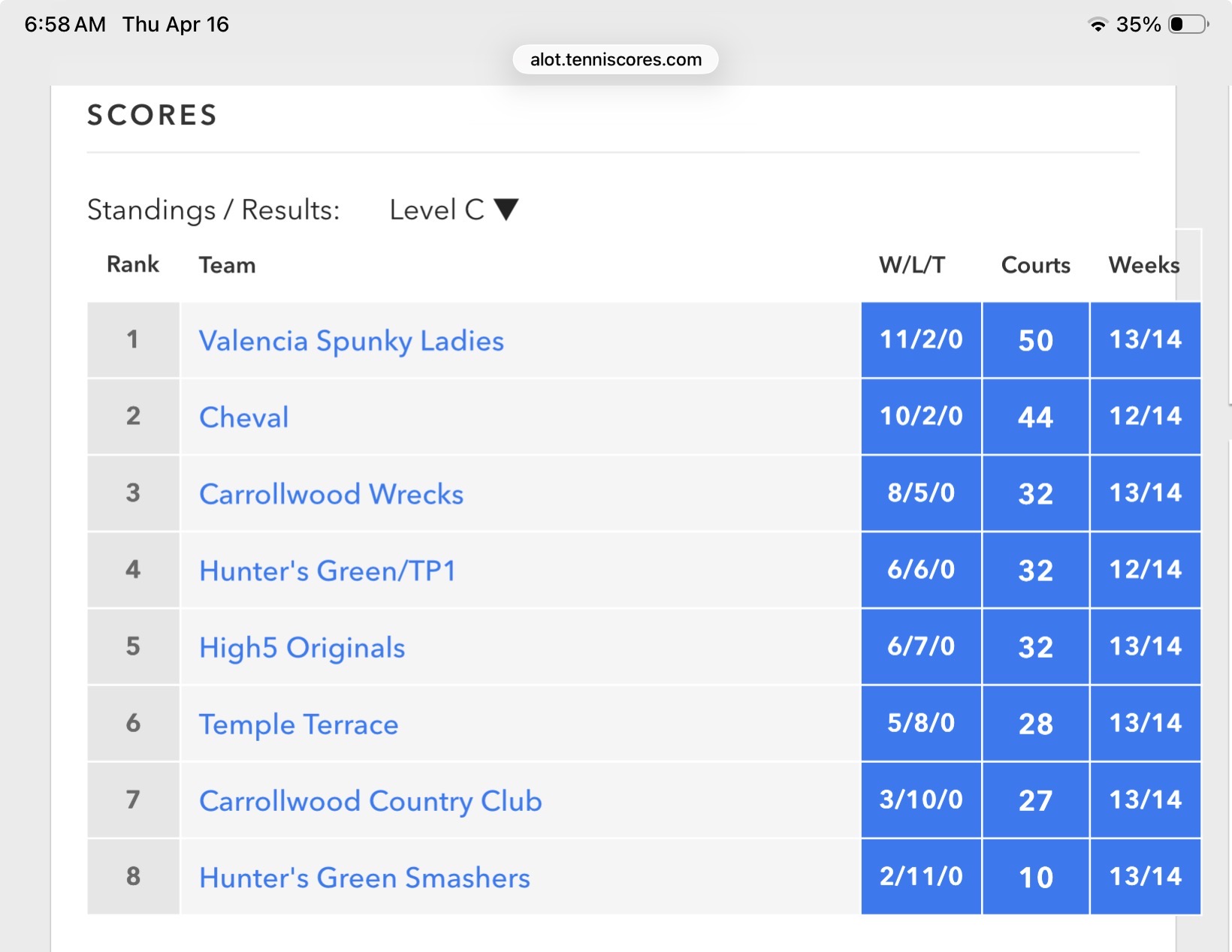 This is their second to the last match of the season. They tied with #2 team but leading 3 court 50:47. (#2 team didn’t update their score till following day.)