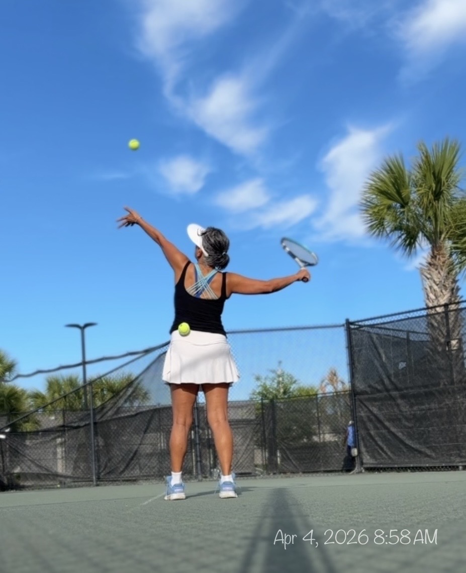 Coach takes over and gets a game. So it was 6-1. The second set they won 6-2. His comment on my forehand (ok) and serve: bend the knees.