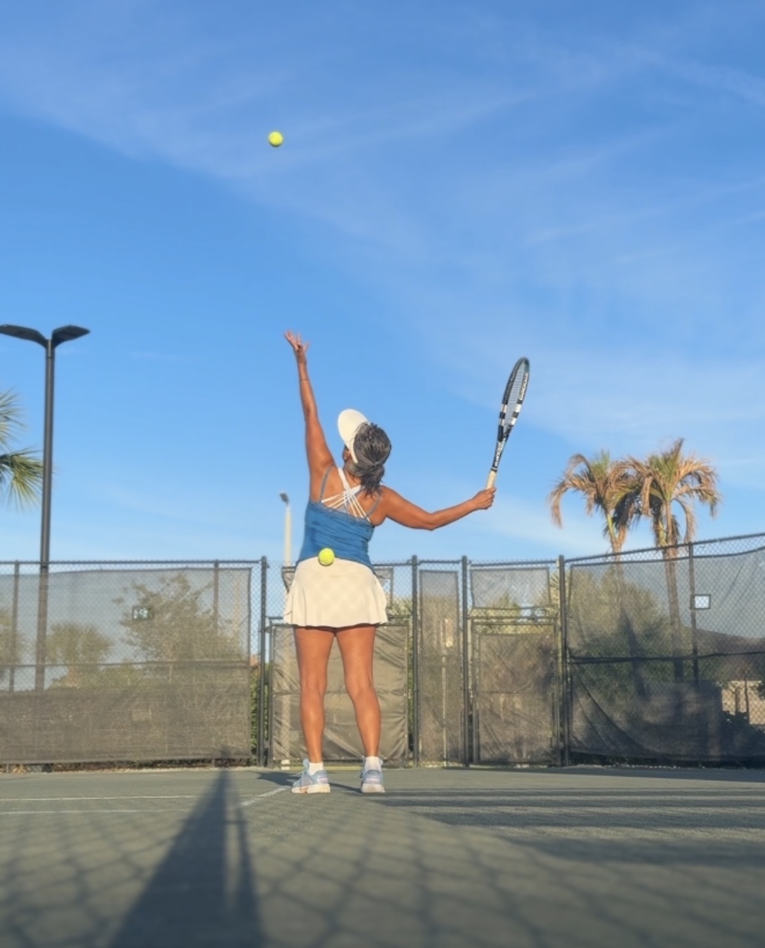 Laurie and I played Line 3. I served first in the first set, last in the second. No double fault, but I lost my serve once in the first set. We tried to break them at 5-1 but failed. I served out, sealed the win with a good serve, the return went long.