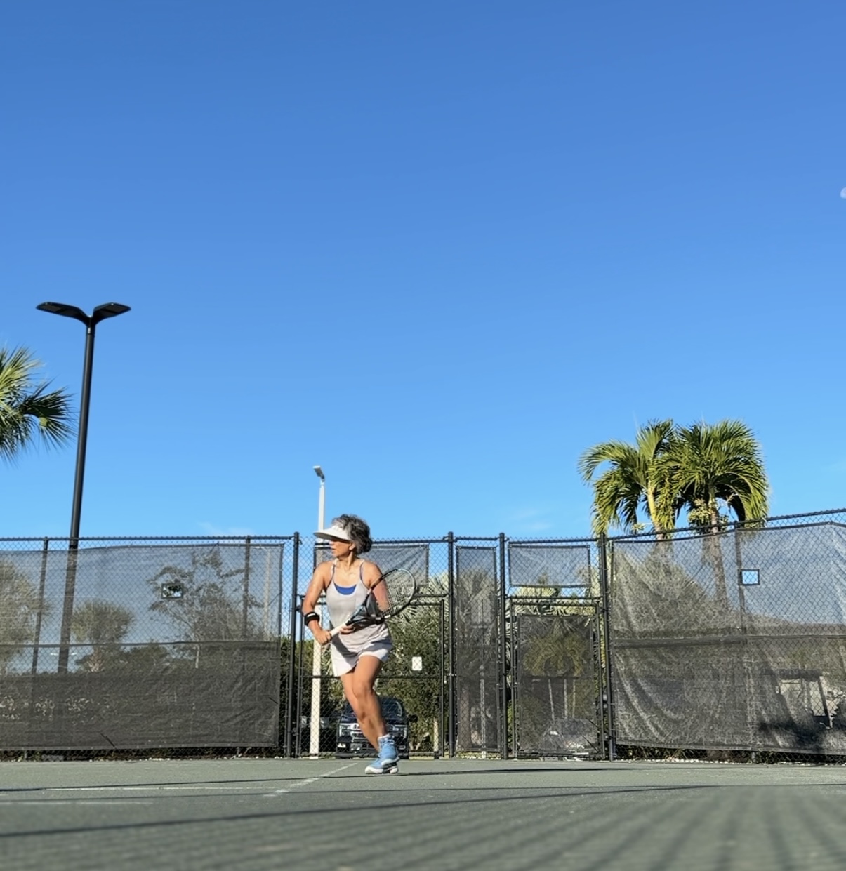 After hitting from baseline and volley, we played canadian doubles, and I was able to win a game.