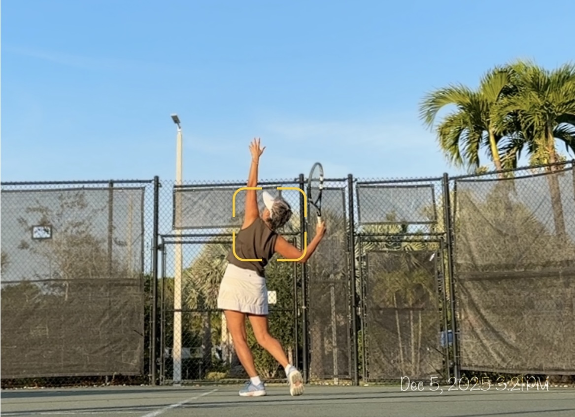 The racket head should stay up straight before the trophy position for a serve, which allows for a more powerful and efficient swing.