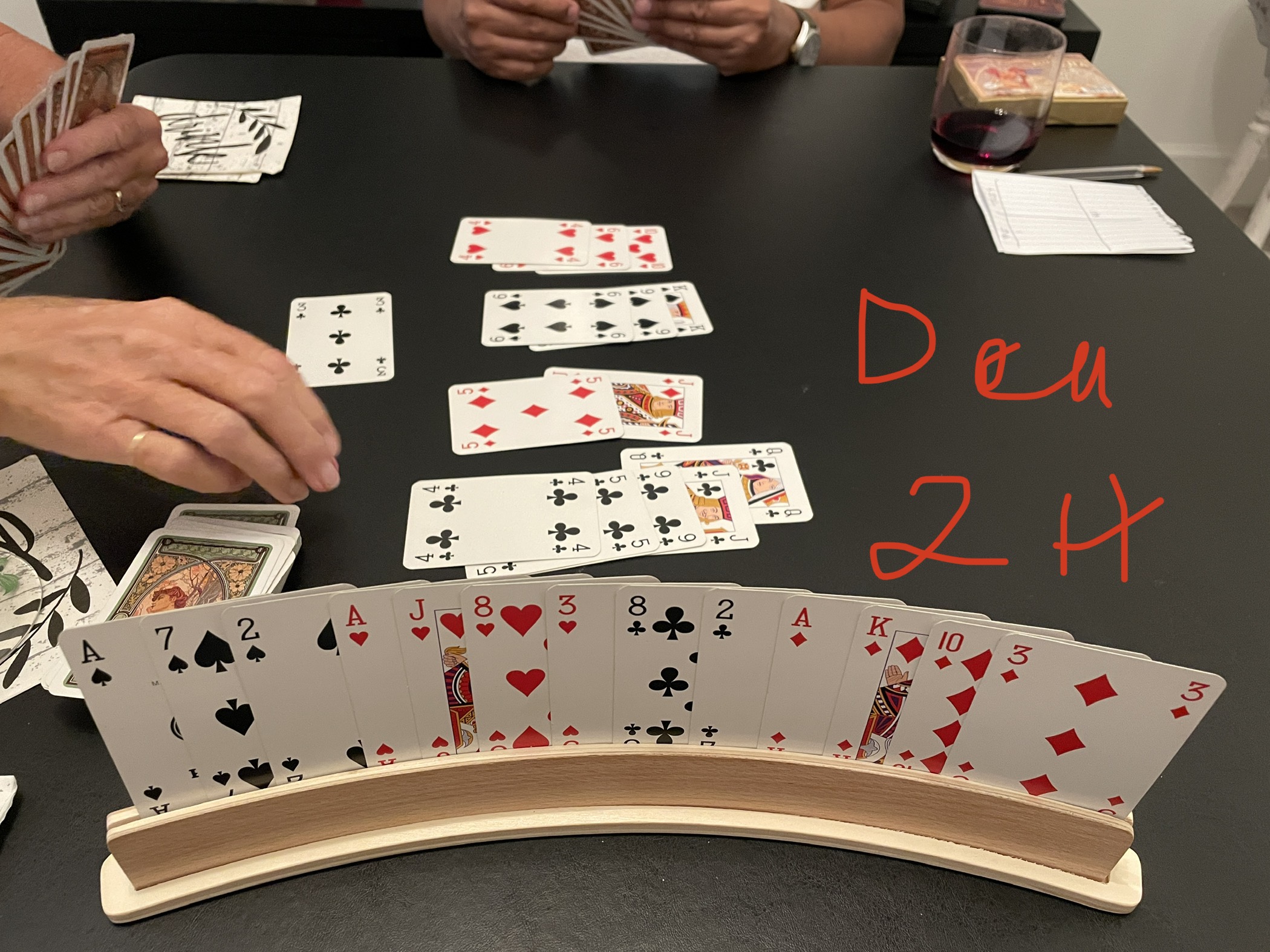 It’s an intense one hour day of bridge: my L played bid and won 7H! My hands have been good, as usual, and won a 3NT.