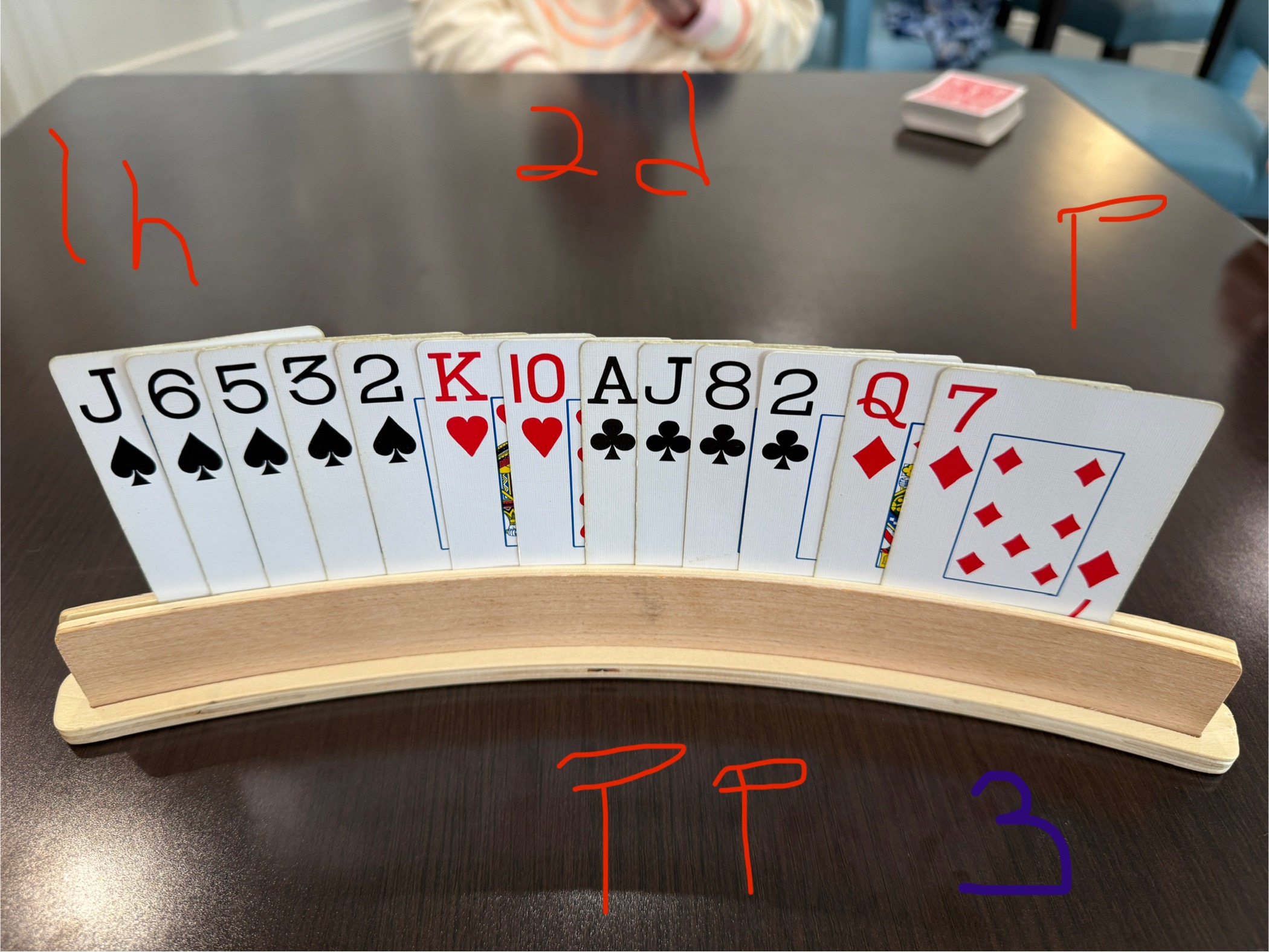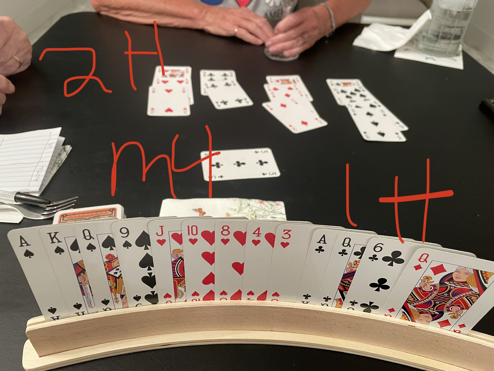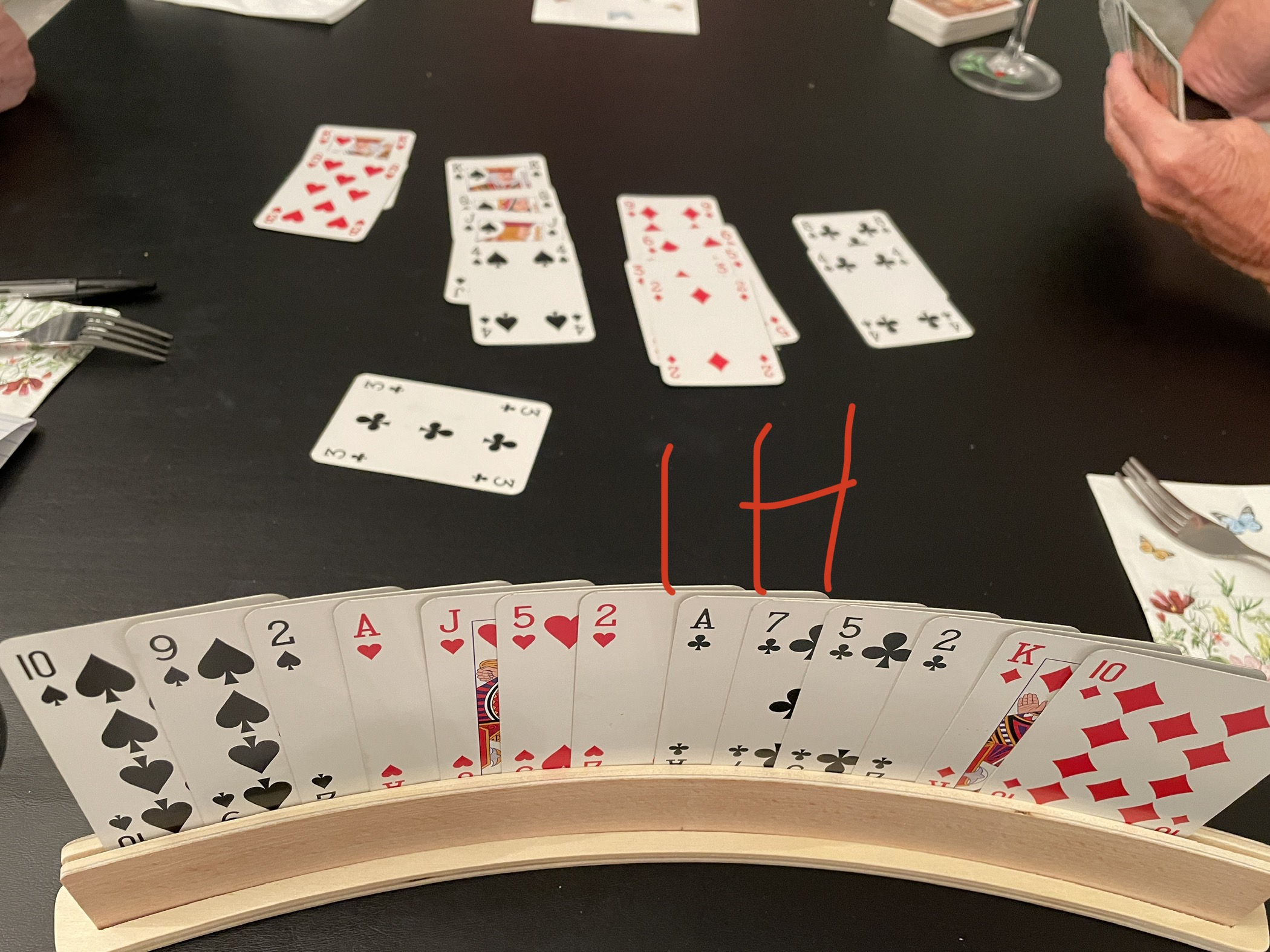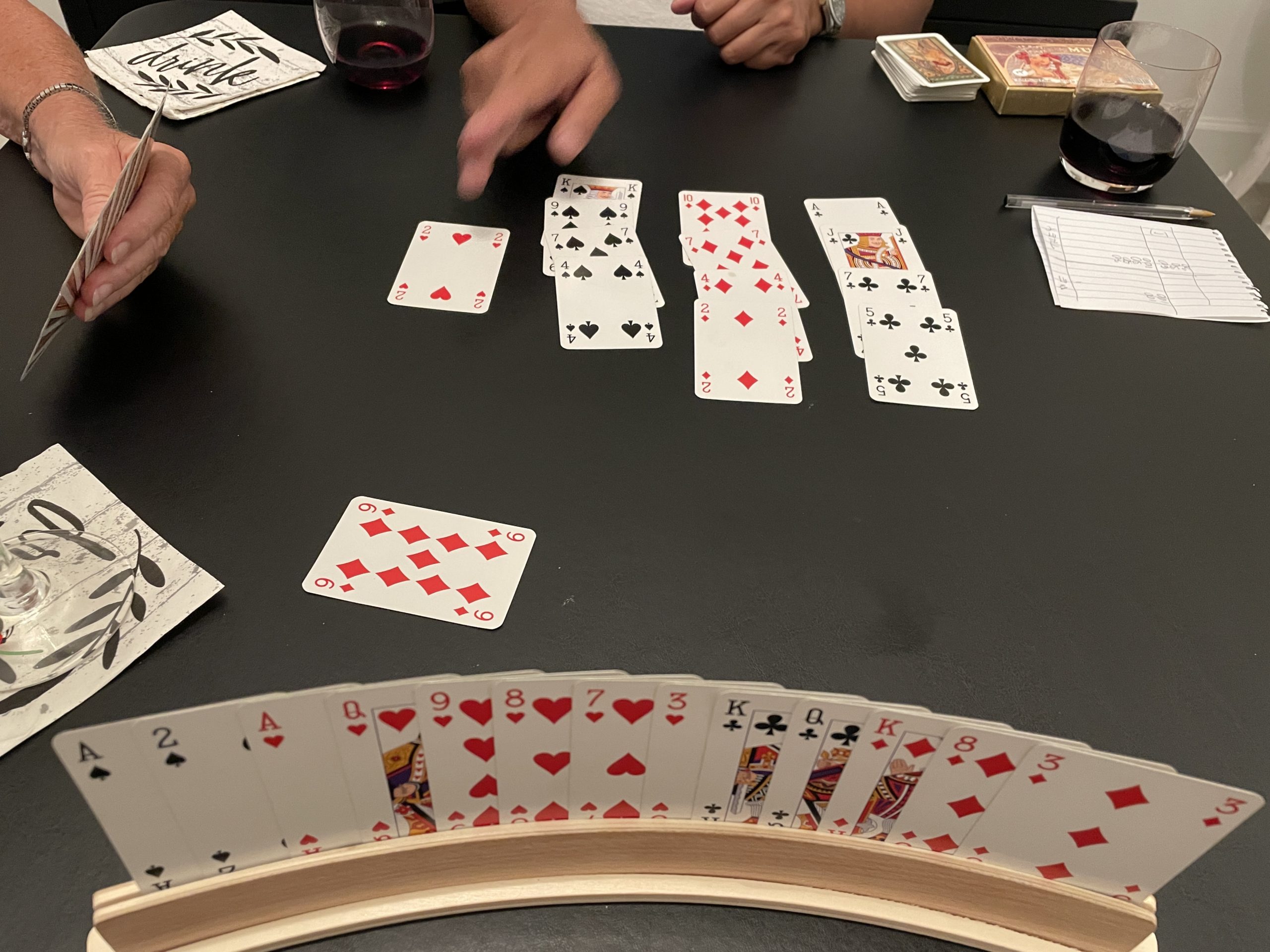 Barb played the most – 8, and I played 7 out of 22 hands.