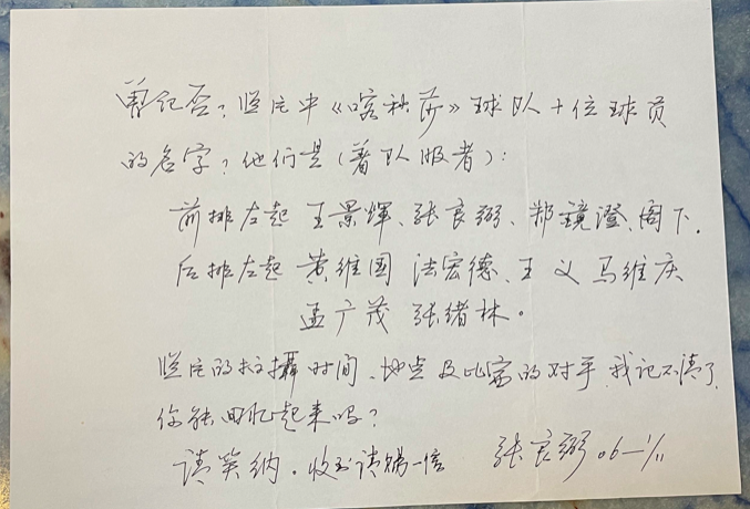 照片的拍摄时间 地点 及比赛的对手我记不清了. 你能回忆起来吗?