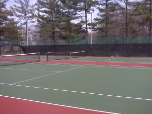 Lots of work to clean the tennis courts in the fall but the scenes are just marvelous. The County repaved the 4 courts at the Whitney Pond.