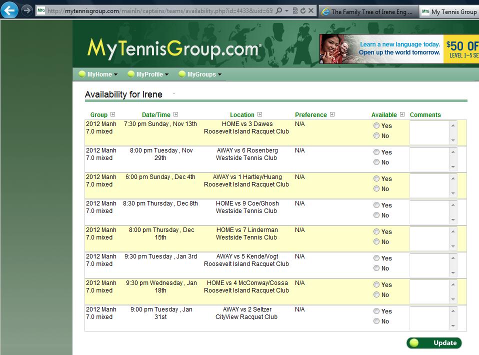My Long Island 2010 mixed doubles 7.0 match schedule