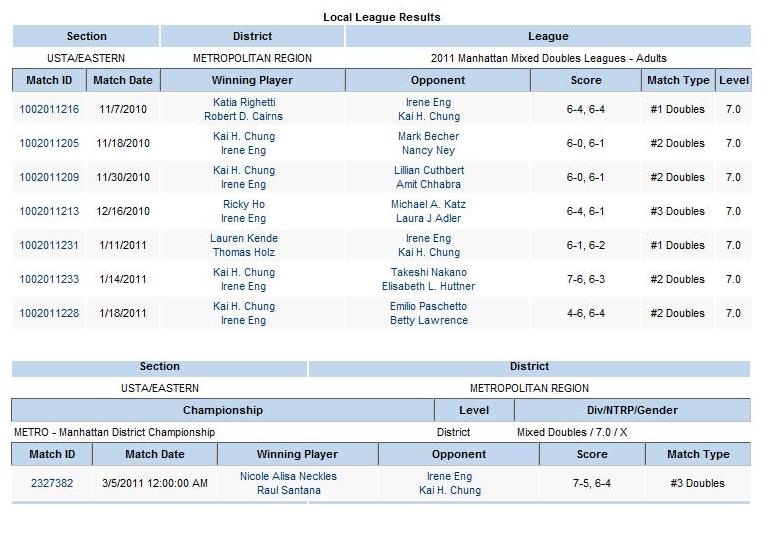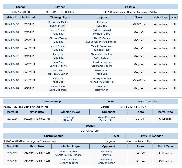 I played 9 matches (out of 10), 6 wins and 3 loses. Two of the loses were with Harry as the third doubles, one as second doubles. Our team won the division playoffs but lost in the Metro.