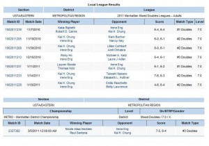 I played 7 matches (out of 10), 5 wins and 2 loses. The Manhattan league matches have to deal with time, because it’s only 1.5 hours. Made to the playoffs but lost in the first round.