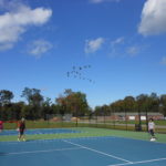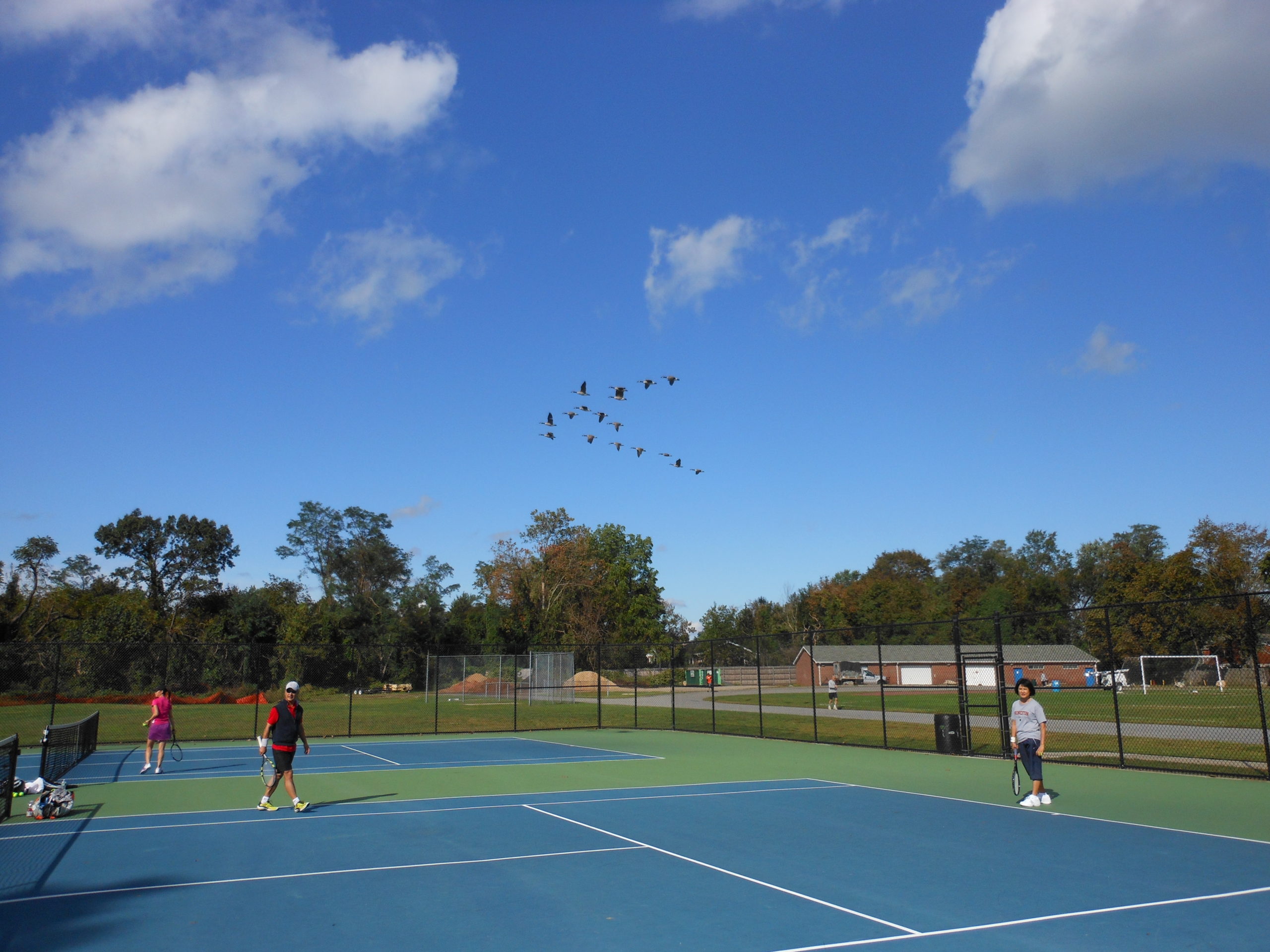 One windy Saturday morning in October. Under a few white clouds that dotted the light blue sky, I was sweating out with the boys on the court at the North. This location has four courts, is evenly divided by a resting area with a three tier bleacher.