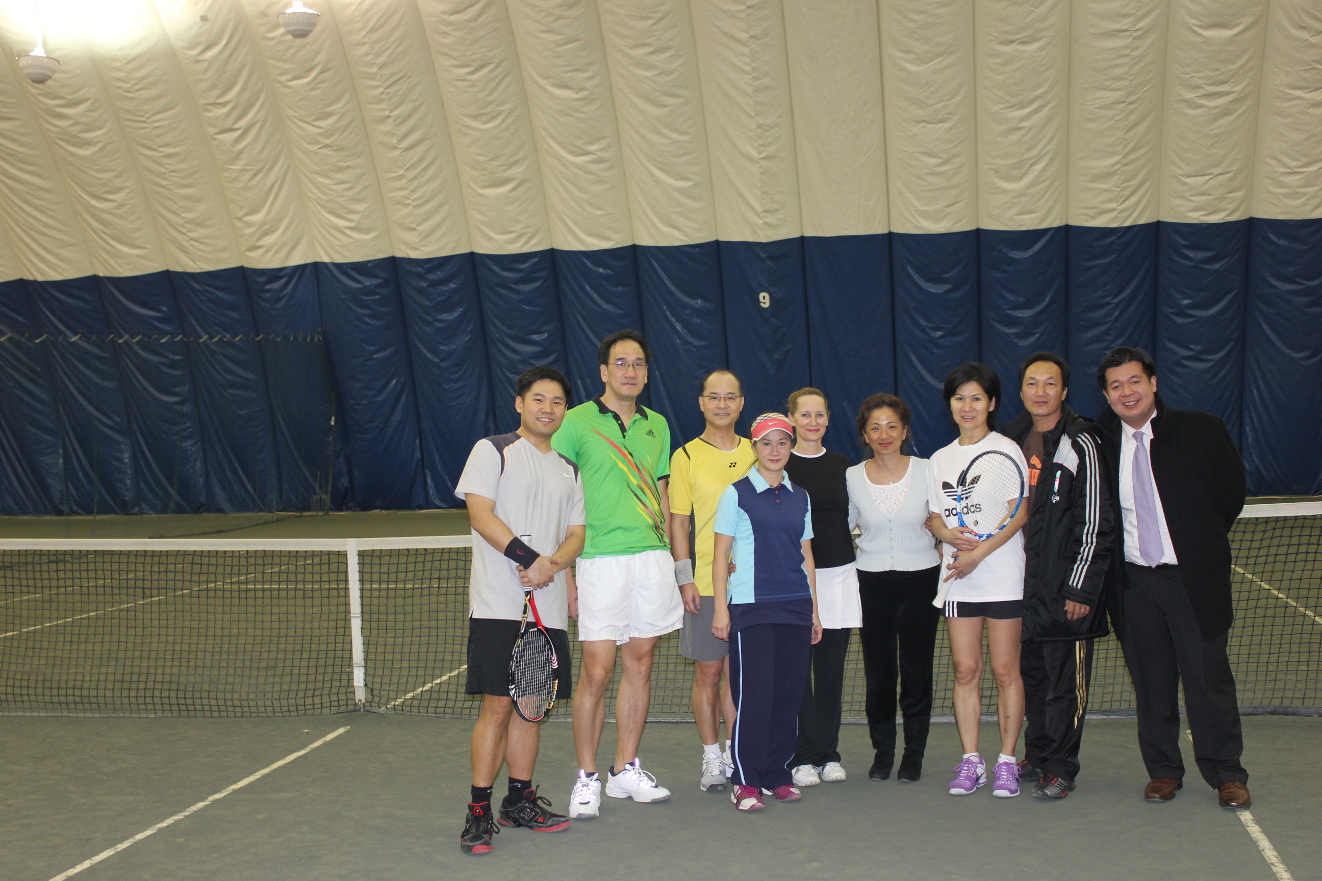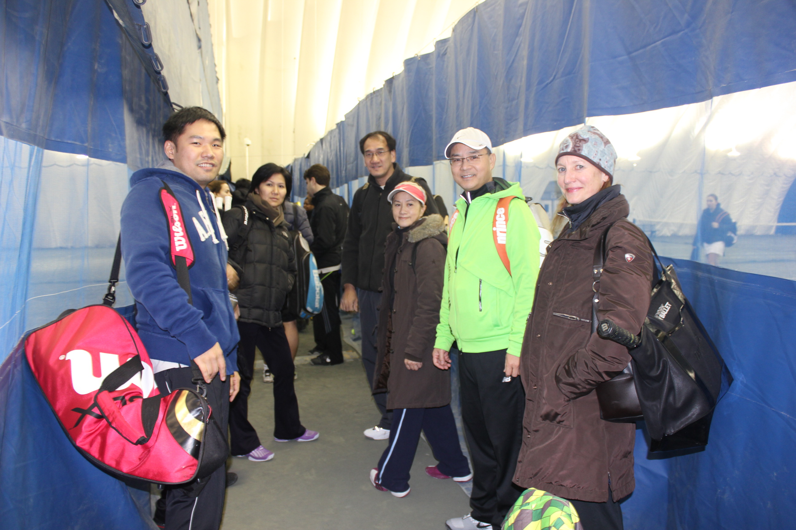 The match took place at the Westside Tennis Club. Upon enter, the receptionist directed us to the main lounge instead the second floor one we usually used. There were four teams from our Divsion I. I had brief conversation with Stephanie Vogt regarding the impending match: