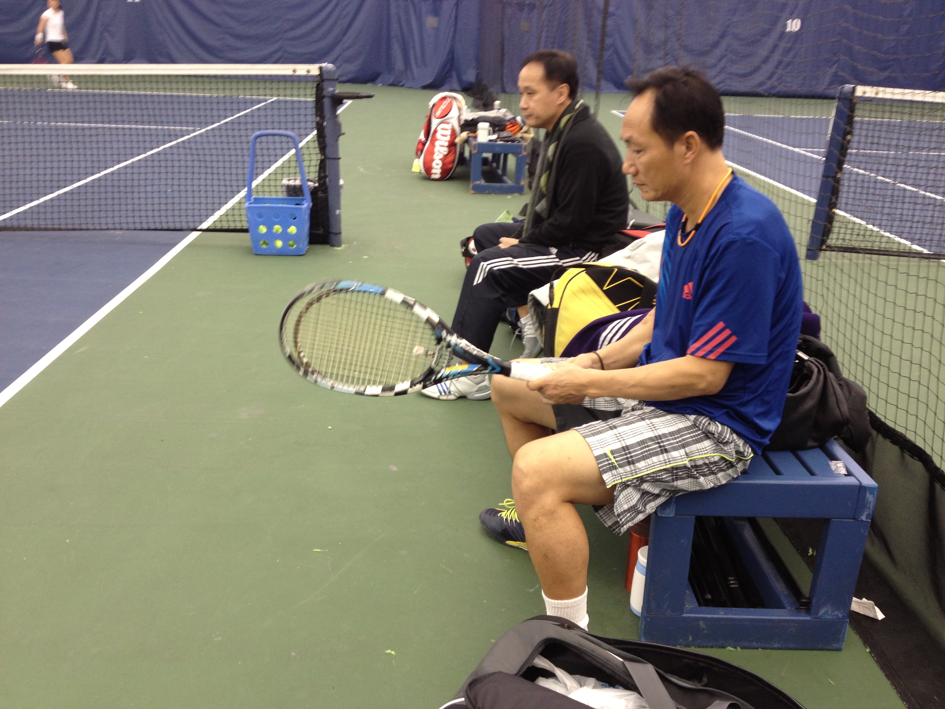 It’s a cold cold night. Two girls come from the city with the #7 subway. I pick up one and the other girl who’s new to the team, doesn’t want to trouble anyone, opts to walk. Thank good lord another teammate spots her and gives her a ride to the the small bubble (har tru). We all huddle up in the holding cell (the small waiting room left to the court). The captains are not presented, and I’m not informed who’ll be the acting captain.