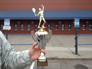 My friend played well in the 2009/10 winter season and came up on top. The other day he saw a discounted golf trophy in a shop, liked it so much that he made the shop owner to refurbished it to tennis, and awarded himself for the win, three years after the fact. file 23160
