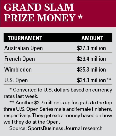 The ATP led the charge on prize money increases at the Grand Slams, which based on a percentage of revenue, had dramatically underpaid athletes compared with other sports. And none more so than the U.S. Open because it has the top revenue in the sport.