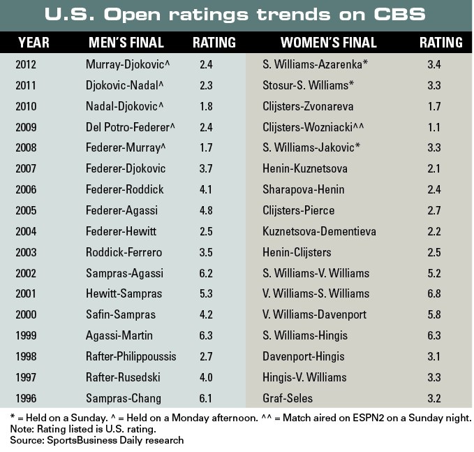 But ESPN’s power and money talk, and for $80 million a year, starting in 2015, the sports giant will have the entire tournament (it currently shares the event with CBS and Tennis Channel). CBS will lose the Labor Day weekend and the finals weekend, and from first ball strike to last, it will be largely ESPN’s event (Tennis Channel retains some rights).