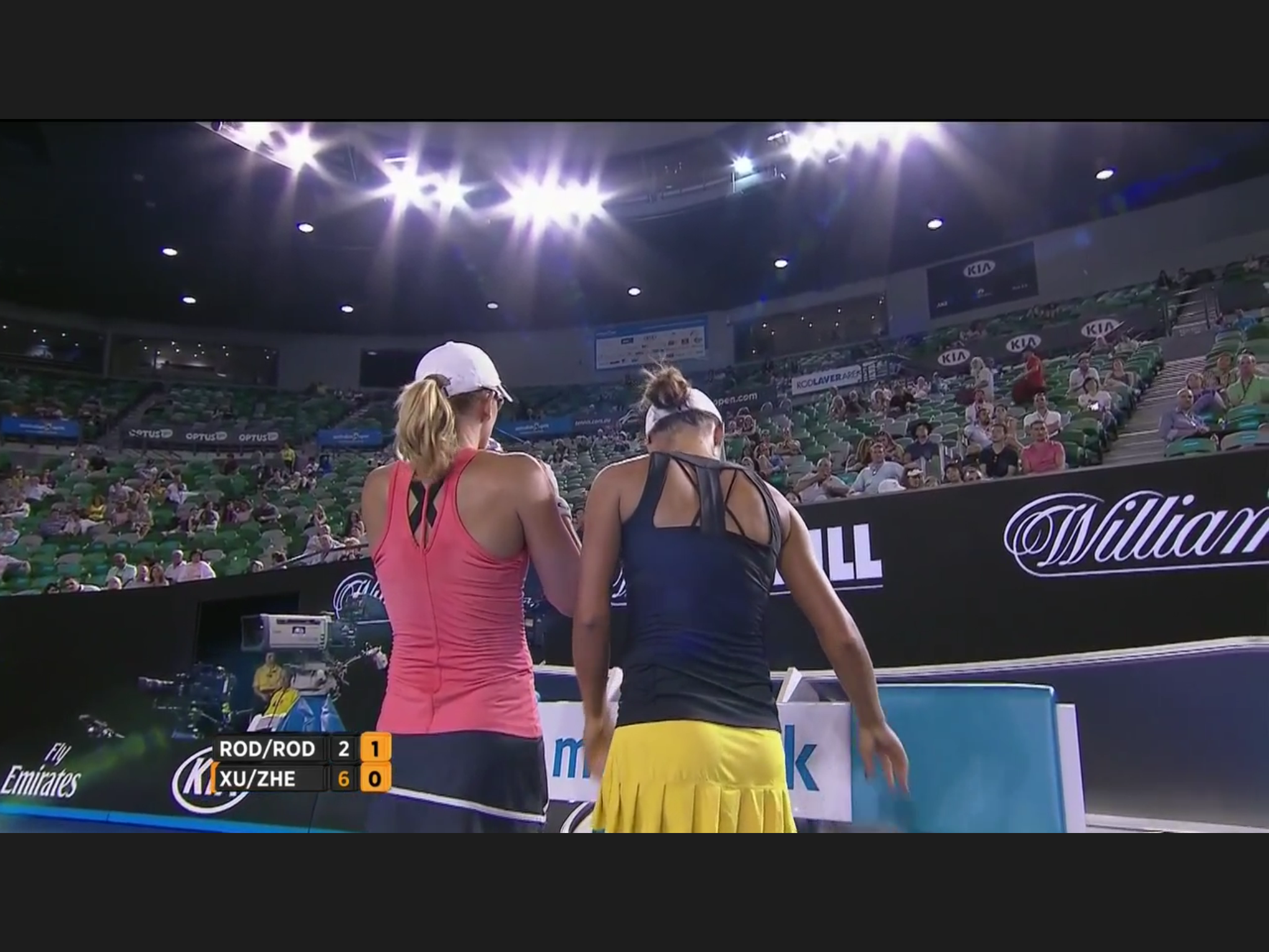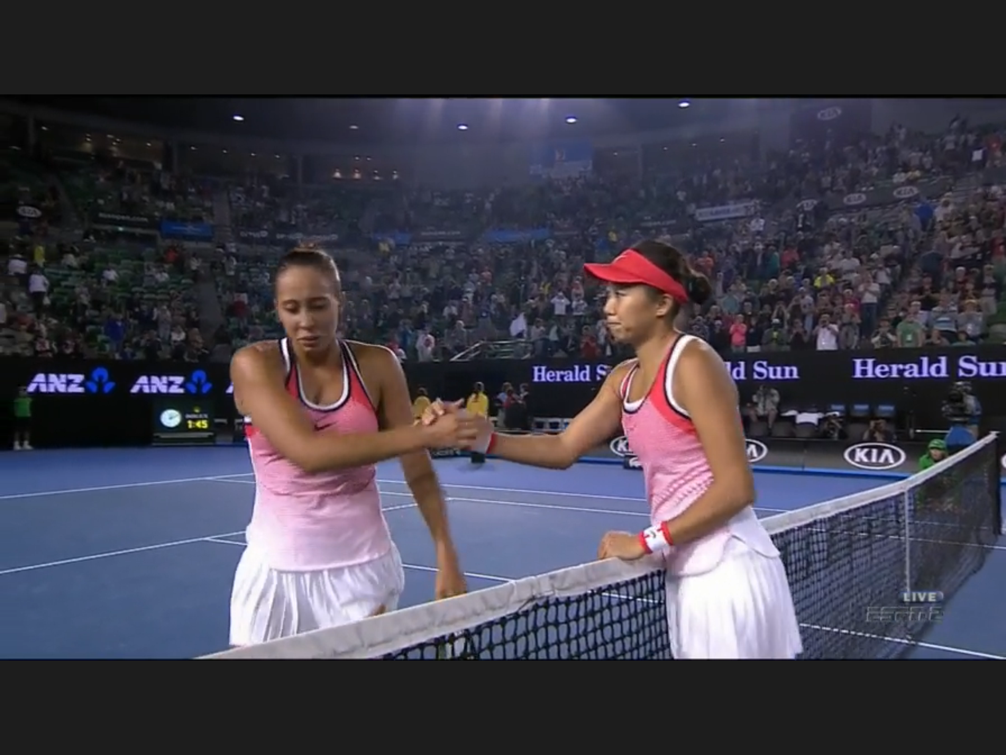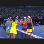 They’ve similar physique and played a closely contested match. The Chinese team led 5-3 in the second set but lost at 5-7. Their outfits are nice. Two women’s doubles team – One pair has something on their back and the other front. Good match to watch @ Australian Open 2016