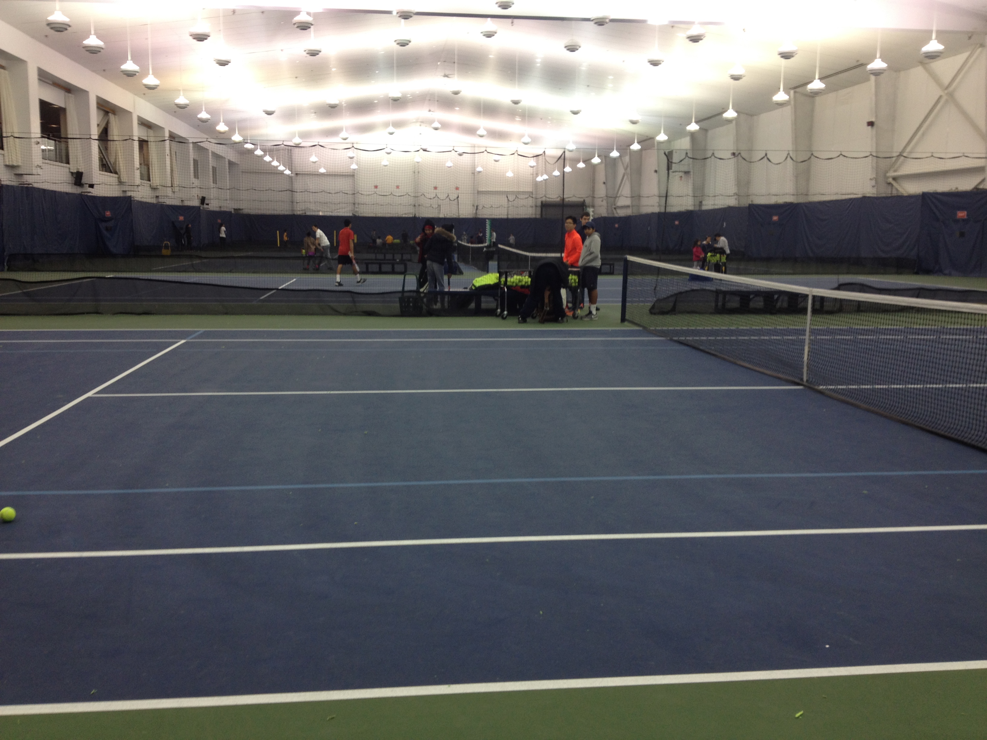 It’s kind of new, started in 2014 or so. Five har tru and five hard courts. The two buildings are not connected. The office and bathrooms are in the har tur building.