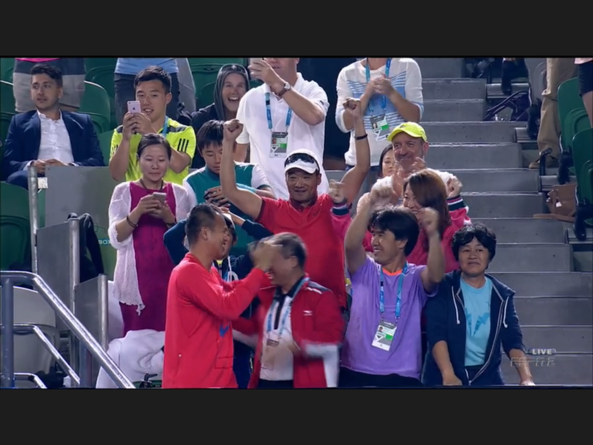 She never won a grand slam in her 14 attempts (here US Open in 2009) and was thinking of retirement, hence invited her parents to the party. As it turns out, she keeps on winning. Now into the quarter after beating Keys who’s injured.  Two girls wore the same outfit.