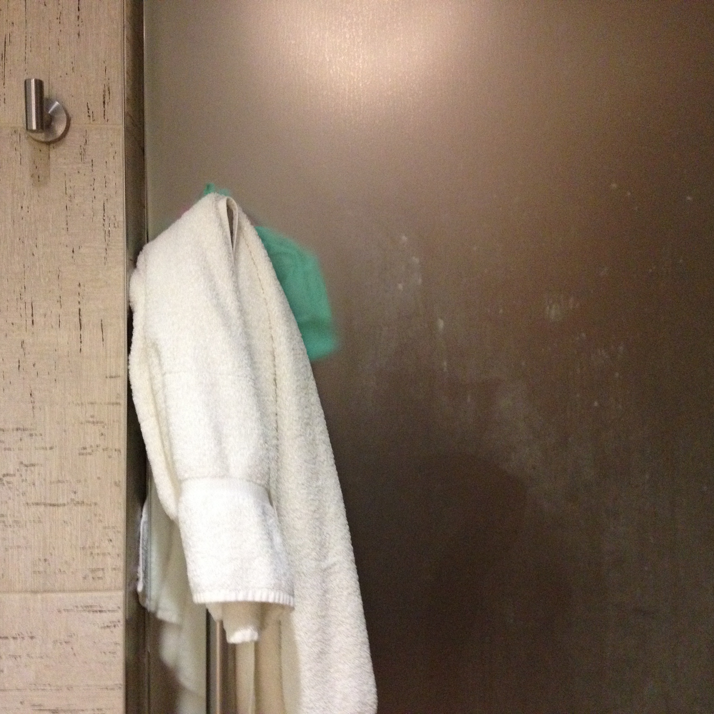 imageI put the towels back to the table and went in to shower. Hung my gym shirt on the door knob (inside), on top of the white towel (see the pix –>>). When I was almost done, someone opened the door.