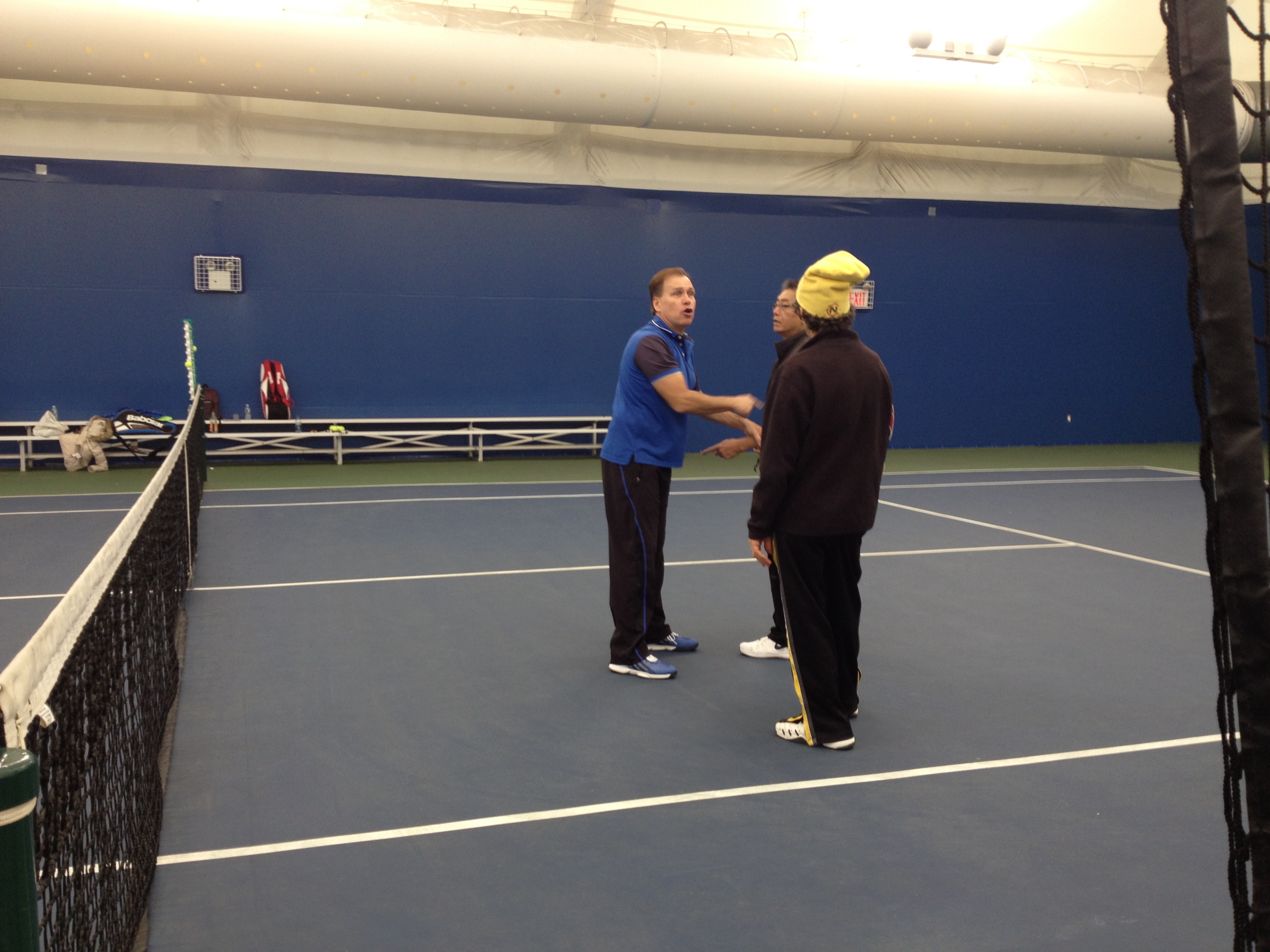My new partner and I won 2:1. Dave has the spinnest serve I’d seen so far but the Bill and I switched side (me taking the left side) and we won the second set.