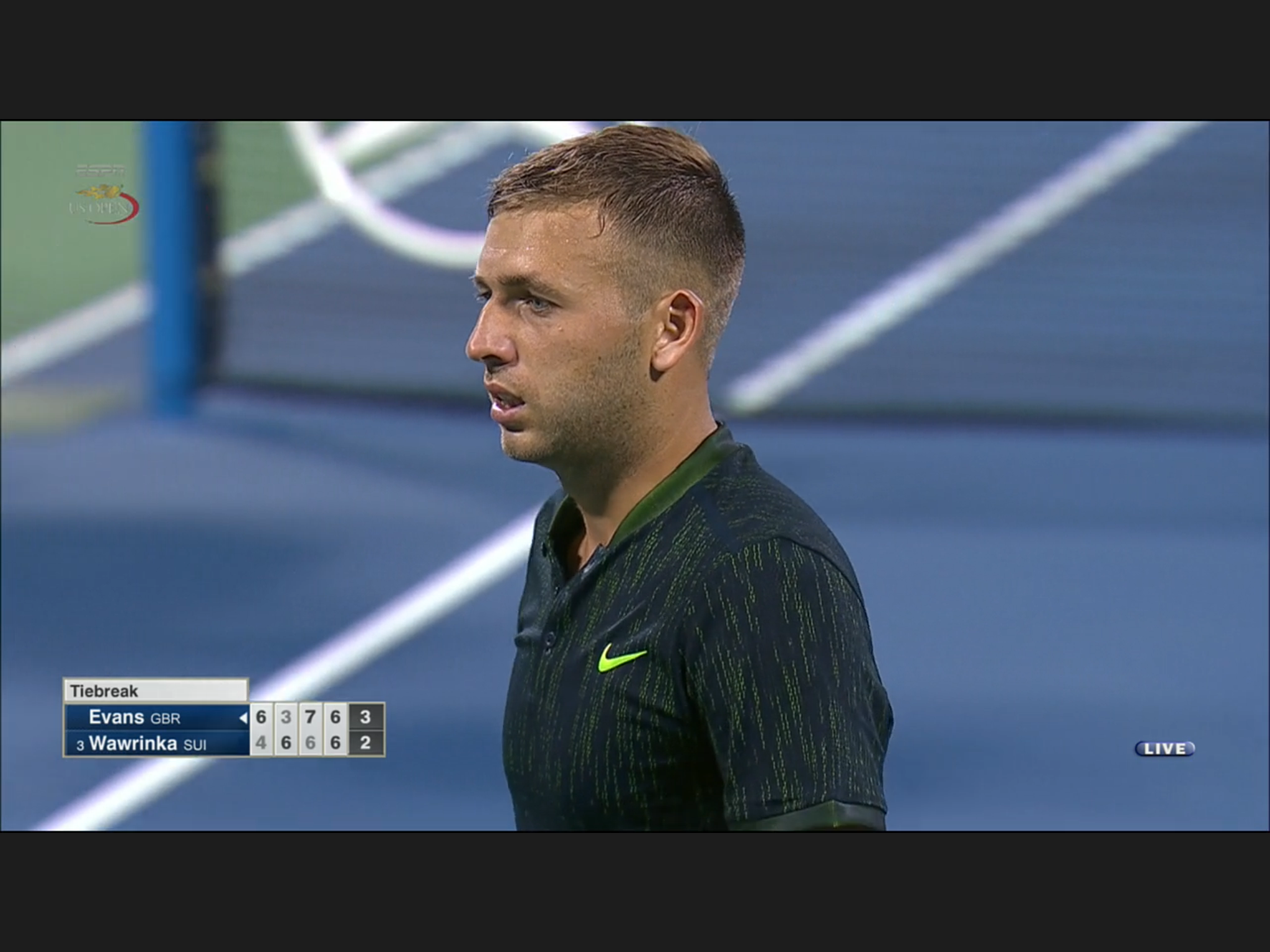 Blink moment. First set tiebreak. Steve Johnson has three challenges but he elected not to challenge. TV showed its OUT, long … and Johnson lost the first set 5-7 …
