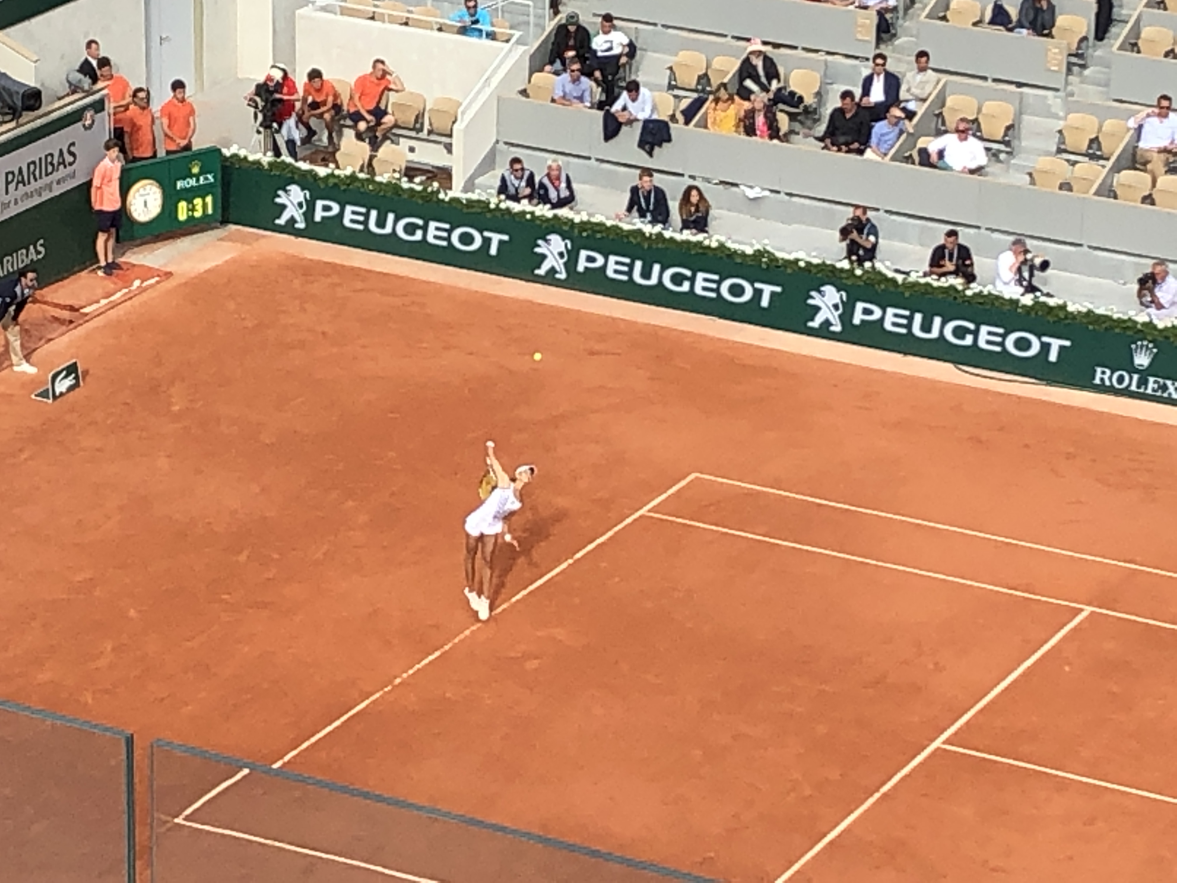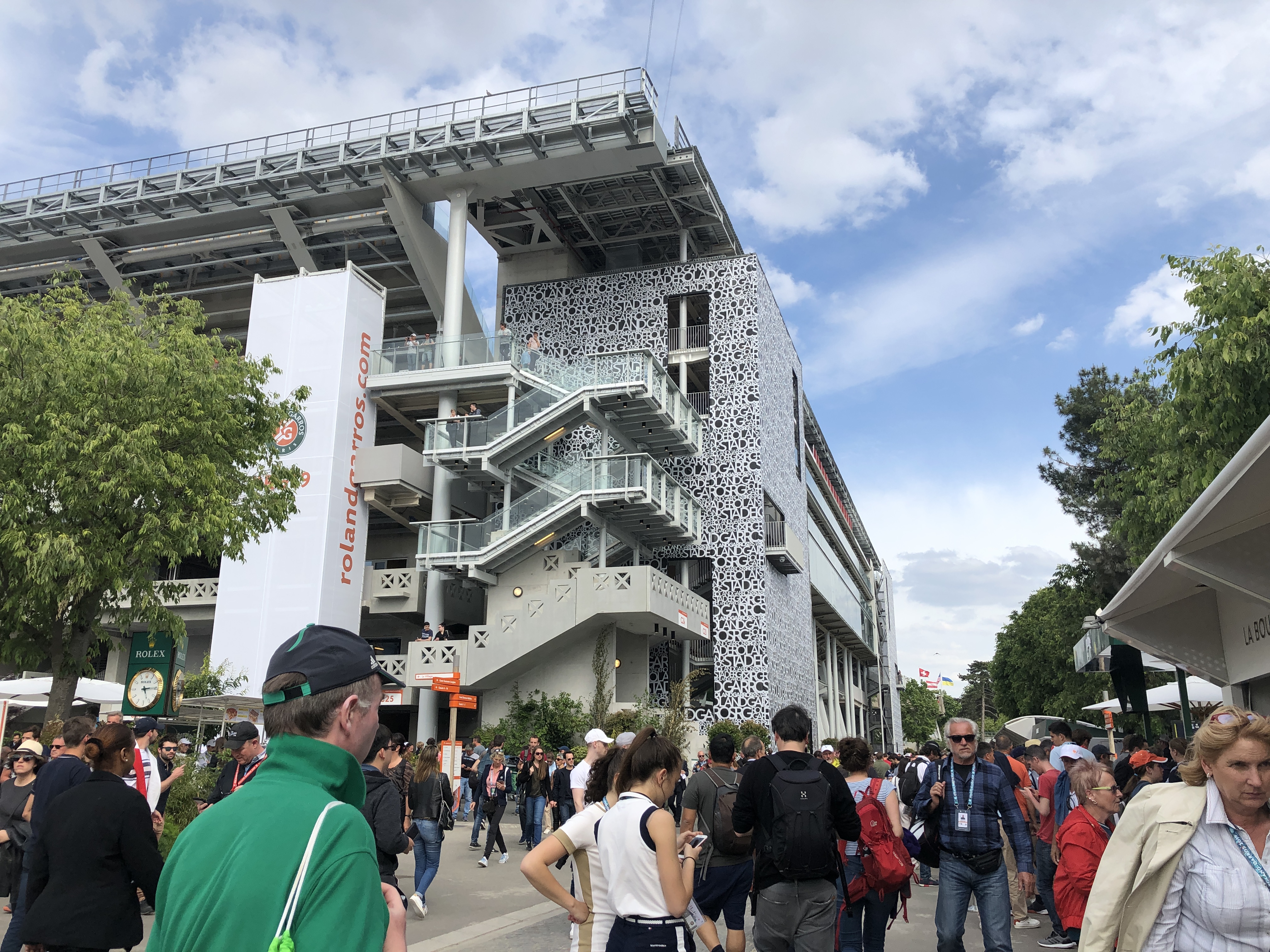 First, something new: the center court – Philippe Chatrier that seats 15,225, a red clay wall, and a 5,000 seat court Simonne-Mathieu – my favorite and I spend much of my second day there. Tennis, as whole must have some banner years for them to expand so much recently, New York for example,