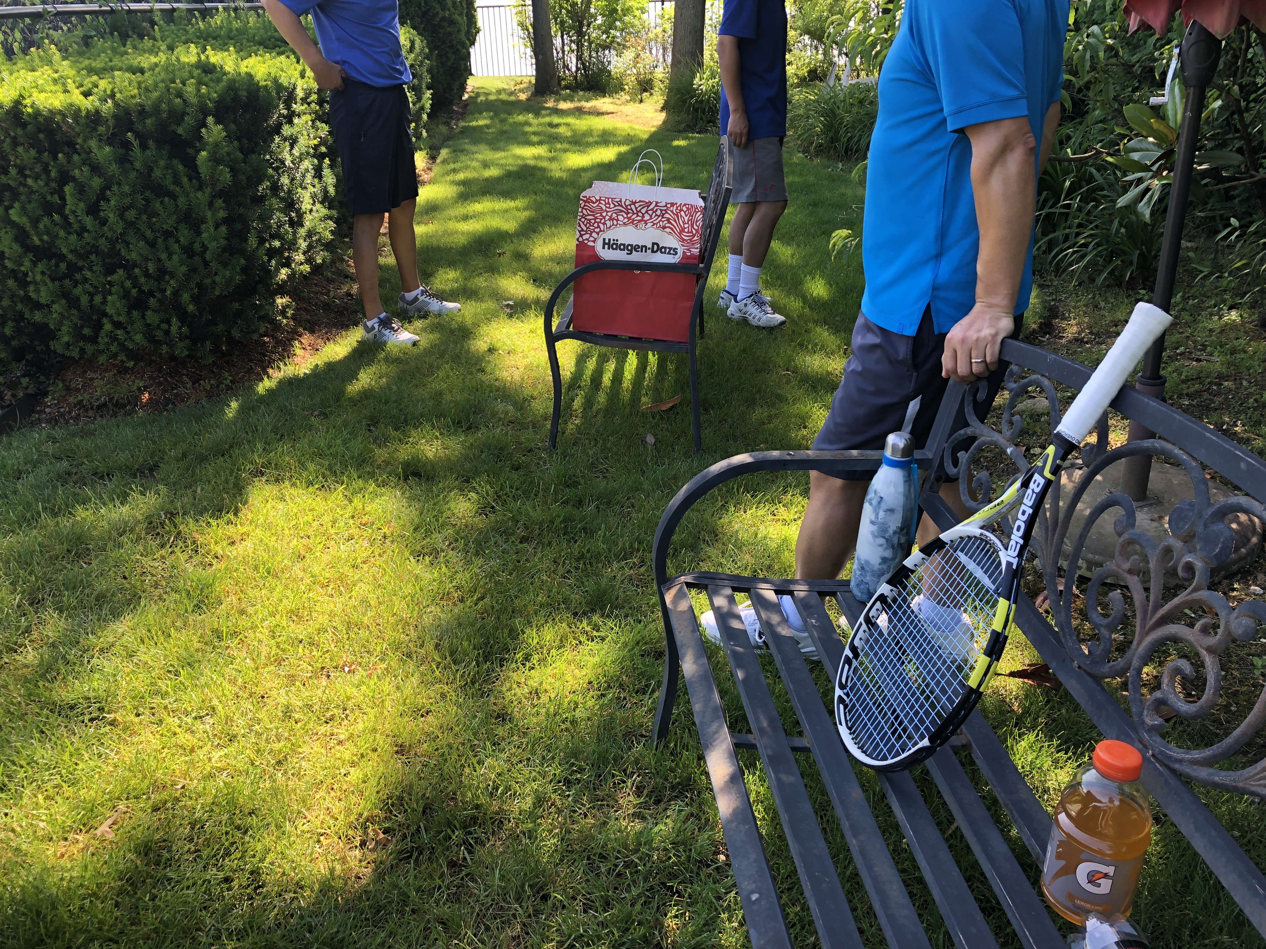 由此想起昨天的新的小鲜肉 和旧的小鲜肉们. 他们都比俺打的好 但是俺每次赢 (99%归功于俺的不幸搭档) 或者打个漂亮的球 他们都会赞几句 我想这是信心所在吧?