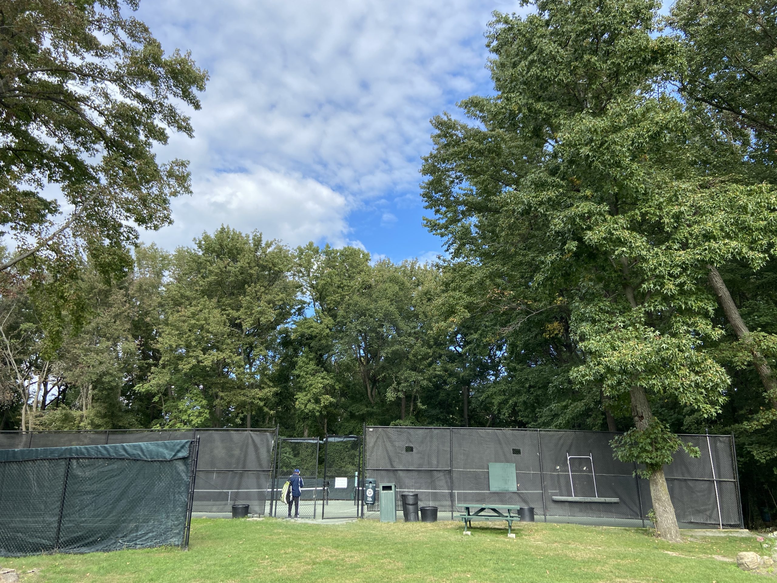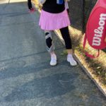 I see her all the time and she often plays in the next court. Her white skirt looks very pretty today.