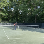 It’s a tough match. I double faulted in my first service game but was able to hold. Then I was serving at 4-1 in the second set, unable to hold. I’ve never served up so many doubles. Thanks to my partner, we were able to carve out a win.