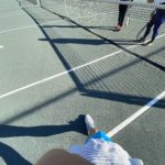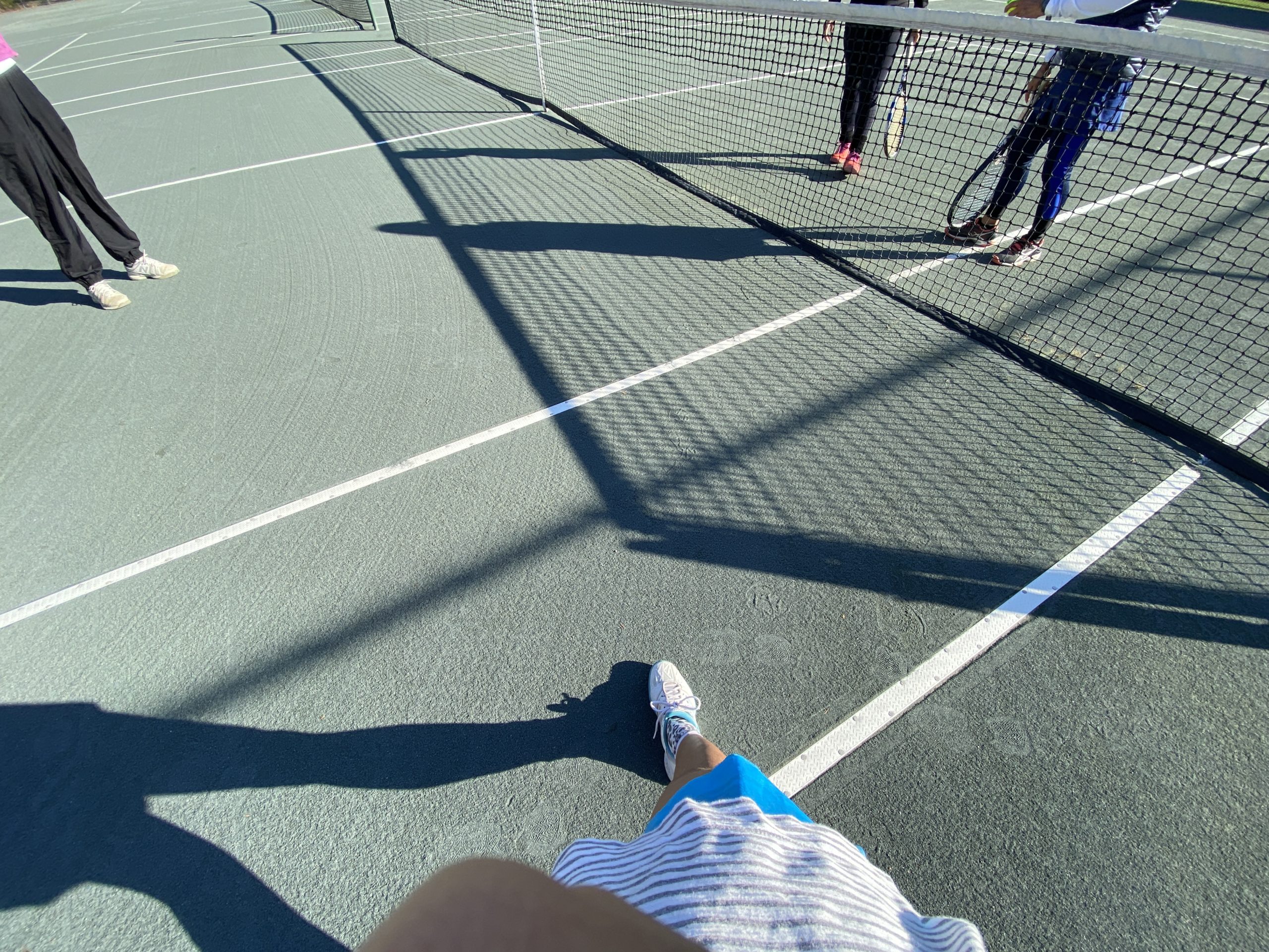A 75º day and cloudless: perfect for tennis. I never ran myself breathless like this one. We won two games in the second set after being down 0-5… A great game.