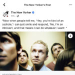 Funny, in one of New Yorker’s recycles, I saw this one, “Now when people tell me, ‘Hey, you’re kind of an asshole,’ I can just smile and respond, ‘No, I’m an introvert, and that means I can do whatever I want.'”