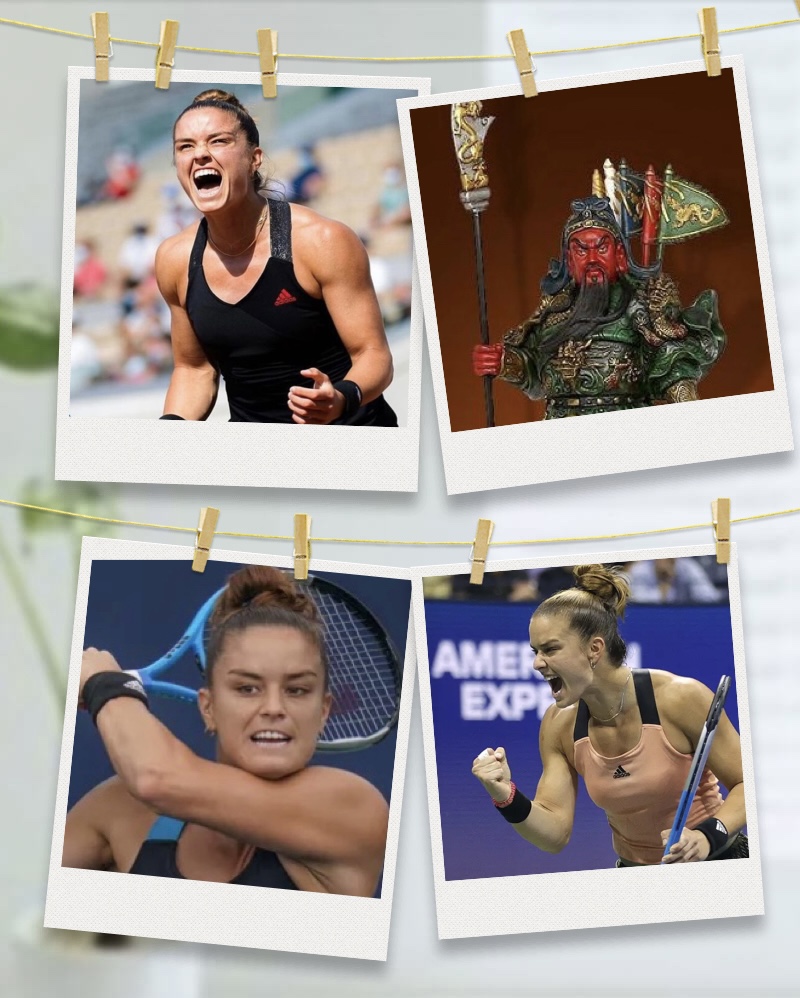 Every time I see this Greek player Maria Sakkari (1995-; $5m prize winning so far), I think of Guangong 关公, the somewhat angry guy with his eyes’s end slanted upward?