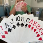 First match was against Craig/Dick. As Craig first serve to me went long, a ball rolled onto our court. I said “take two.”