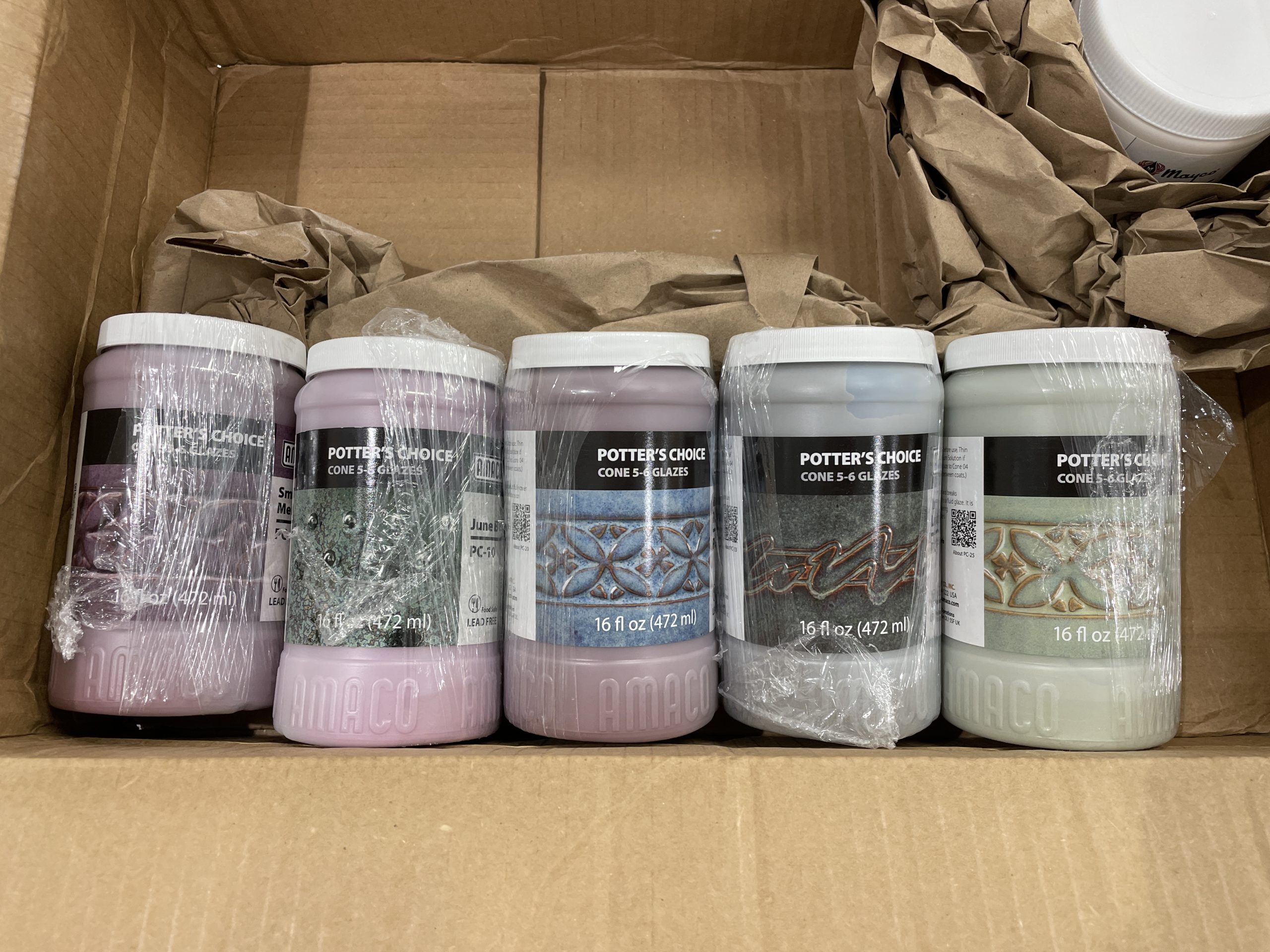Ya, we’re glazing, finally! With so many colors (Amaco), the fun part begins.
