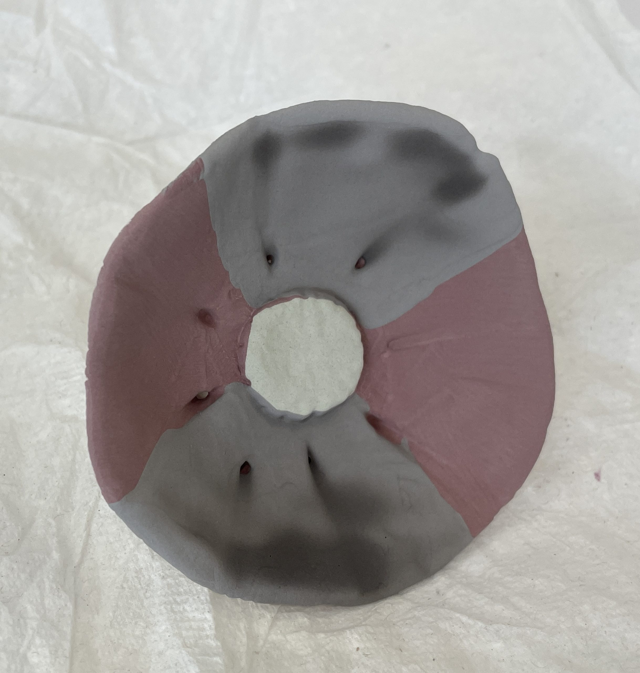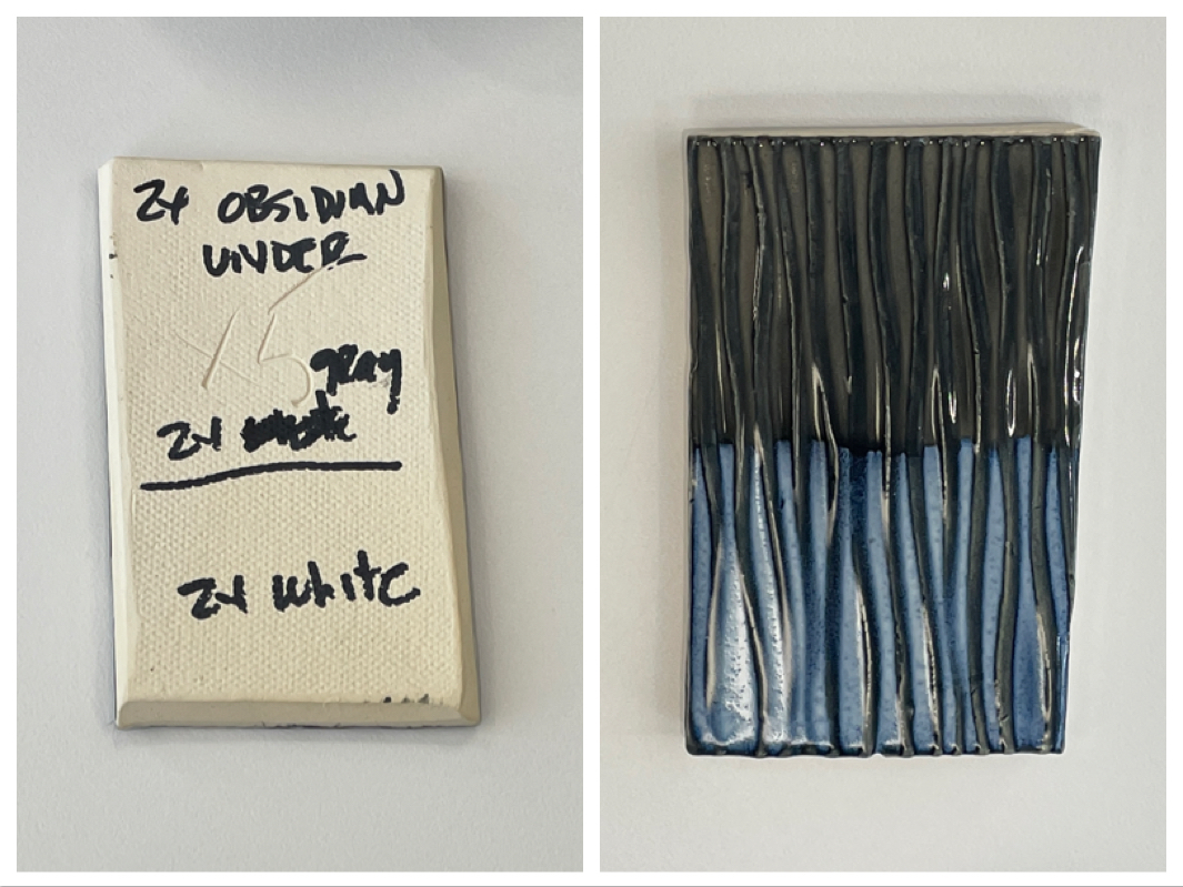Glazing in pottery, I feel is a part of science and part of art: two shades mixing up will turn into totally different colors, when you apply differently – like this one: the top is obsidian under white, and the bottom under grey. The result is so drastic.