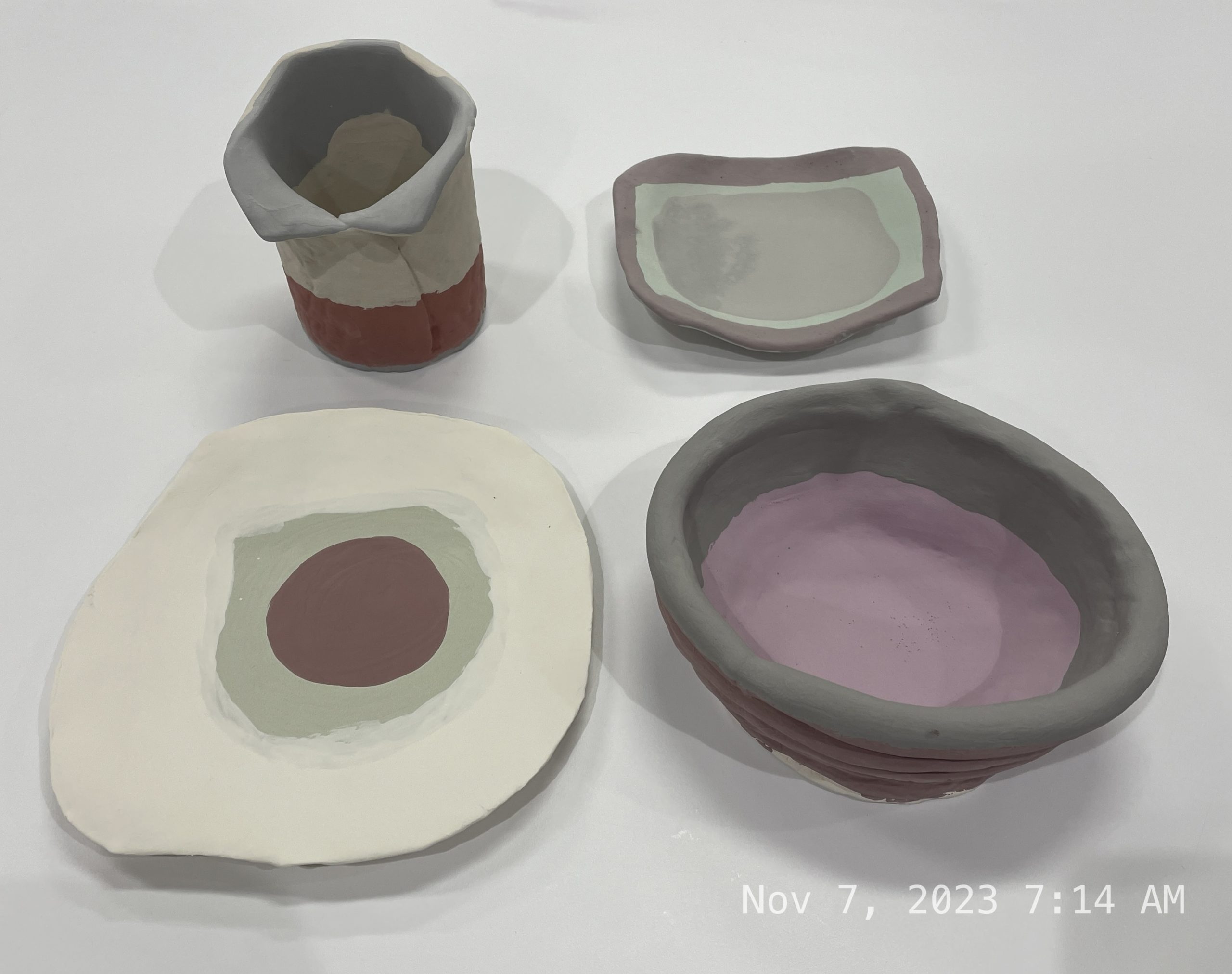 We got our first session‘s creations back: flowers, turtles, mini plate, etc. My little turtle was broken.