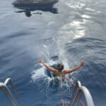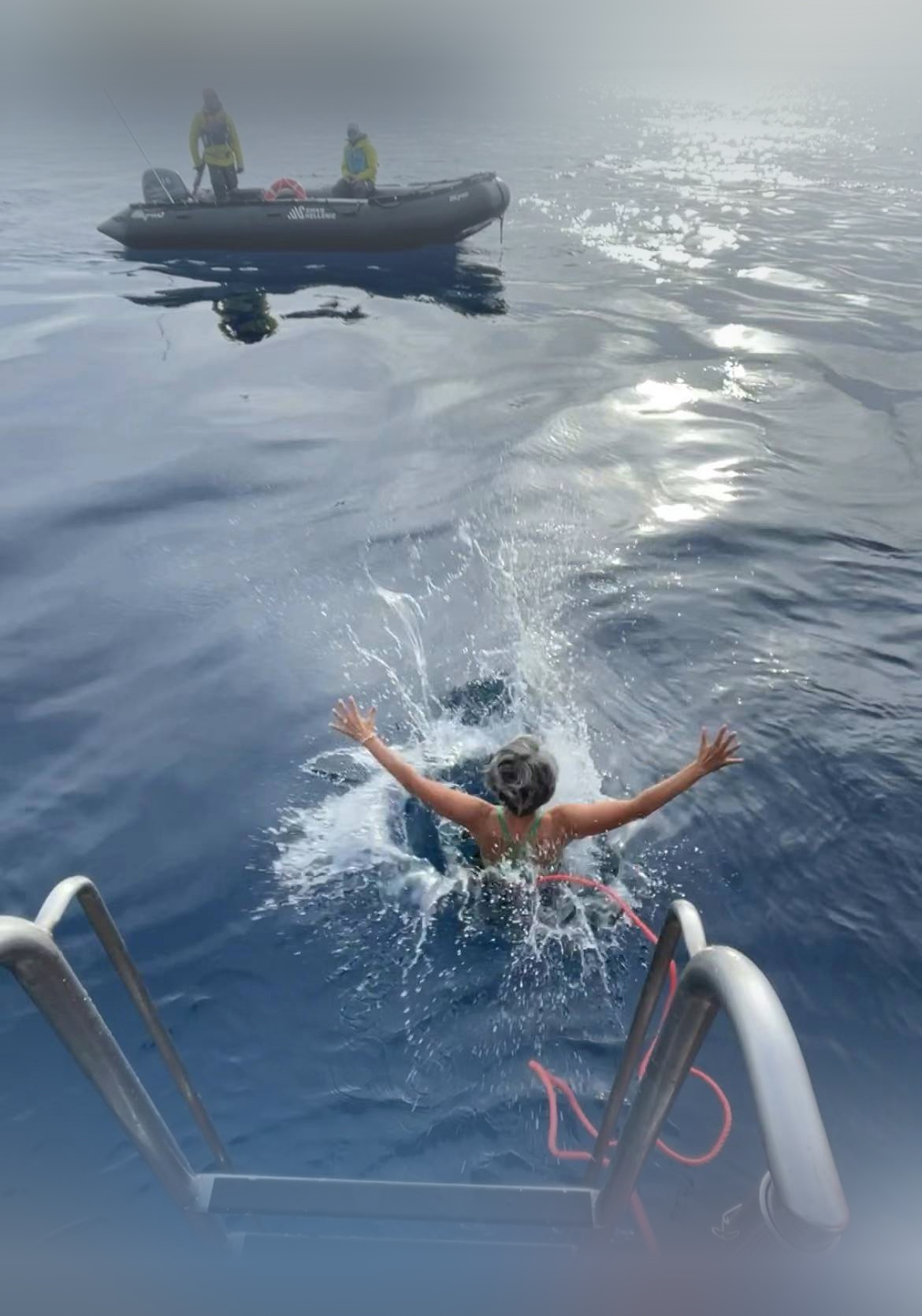 The water temp is 44° Fahrenheit (about 6° Celsius) at 5:40pm. This time, the ship designated a staff to use our phone to video the event, which is really good. I didn’t try to swim this time.