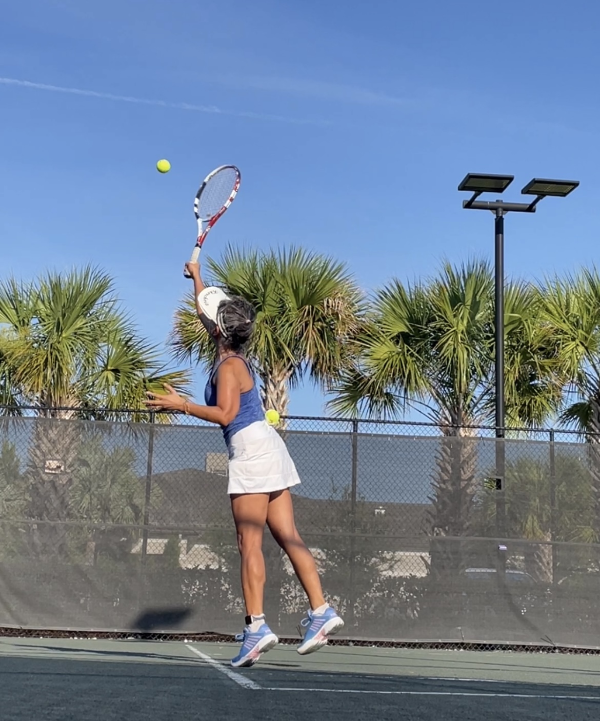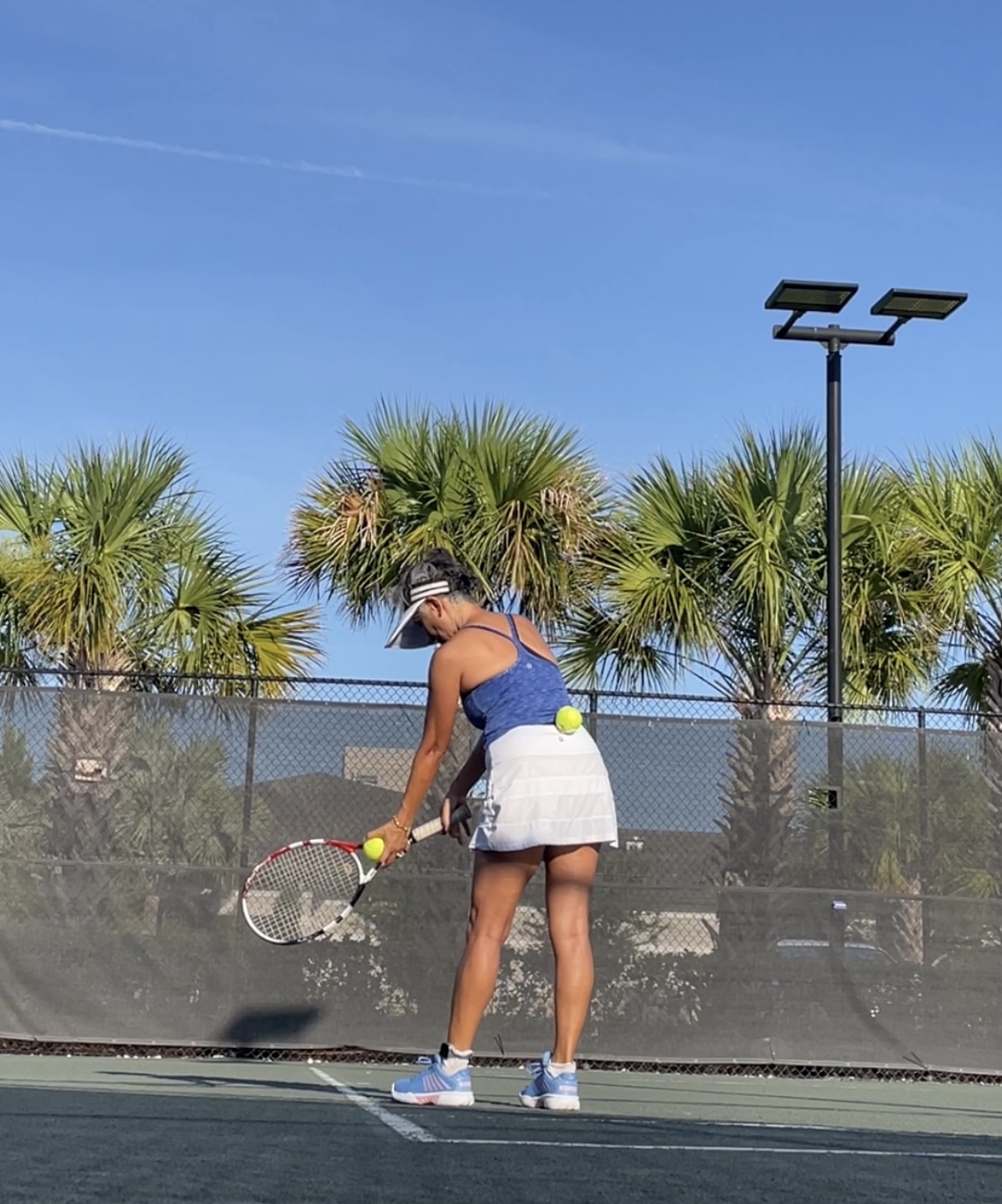 5-3, 4-5, 5-0. We came back from 0-3 in the first set. The second set went down to the wire and I missed a forehand, that lost the set.