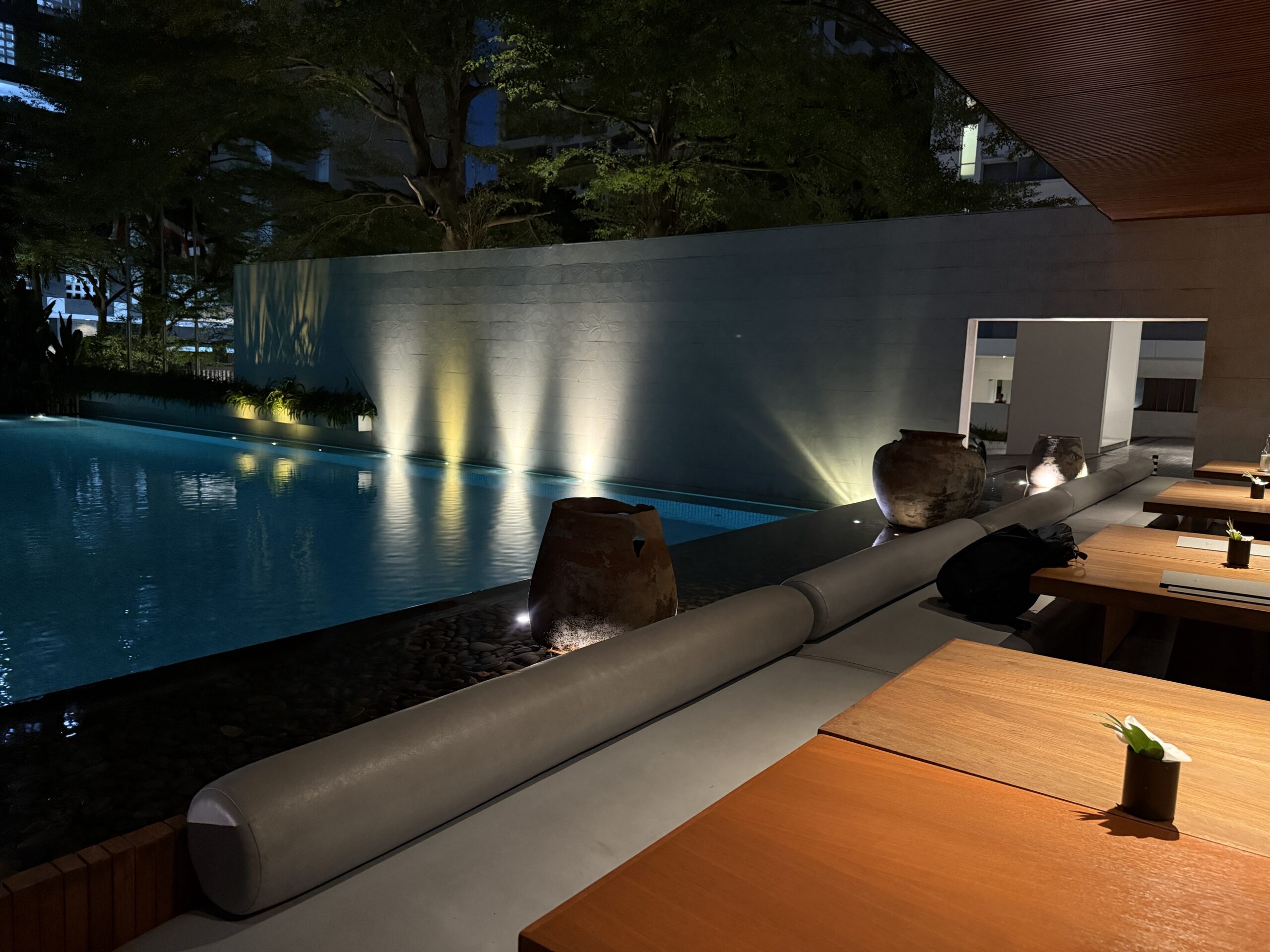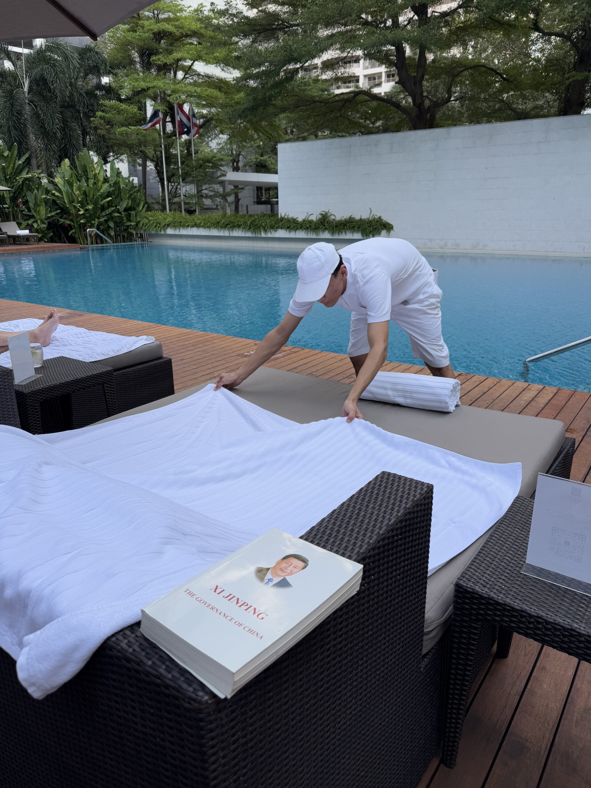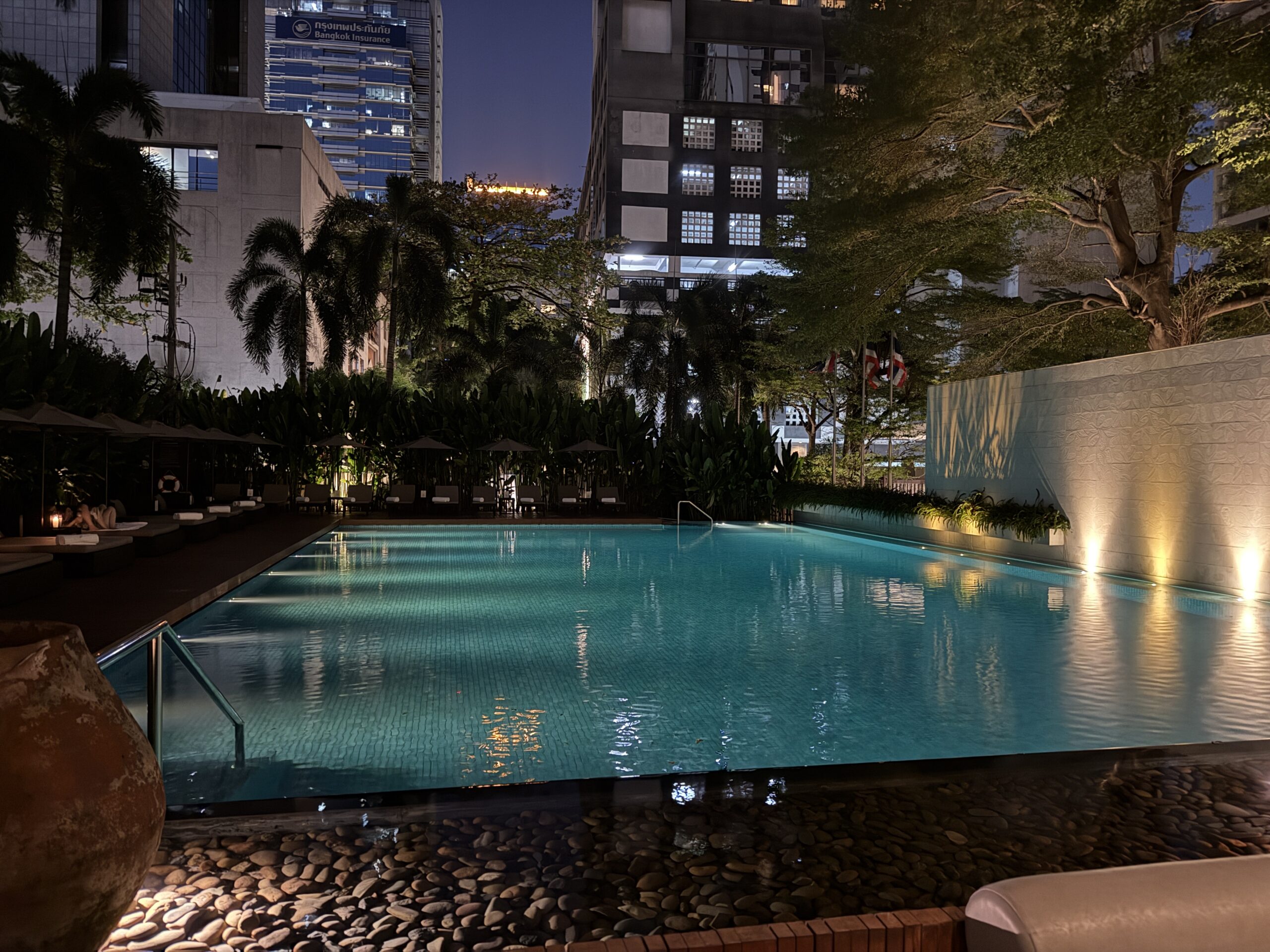COMO Metropolitan hotel in Bangkok has a nice pool, with a decent size. One end is nahm. The slim male staff, all dressed in white, gives off colonial feel.