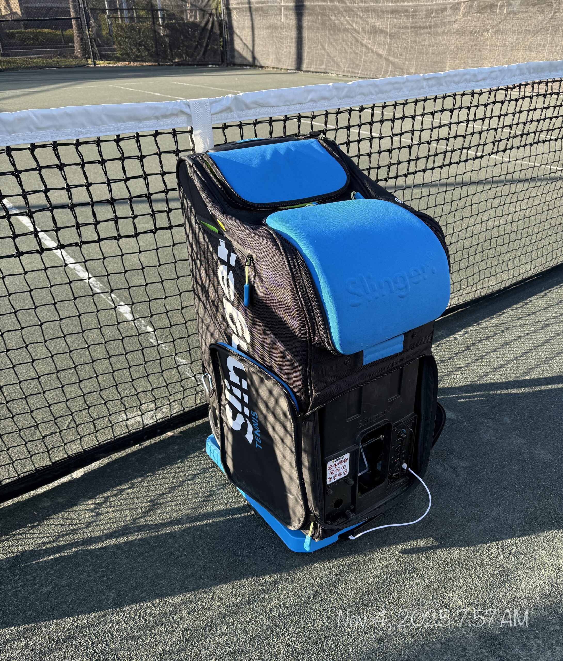 One hand practice w/ Slinger: forehand top/under spin, backhand underpin.