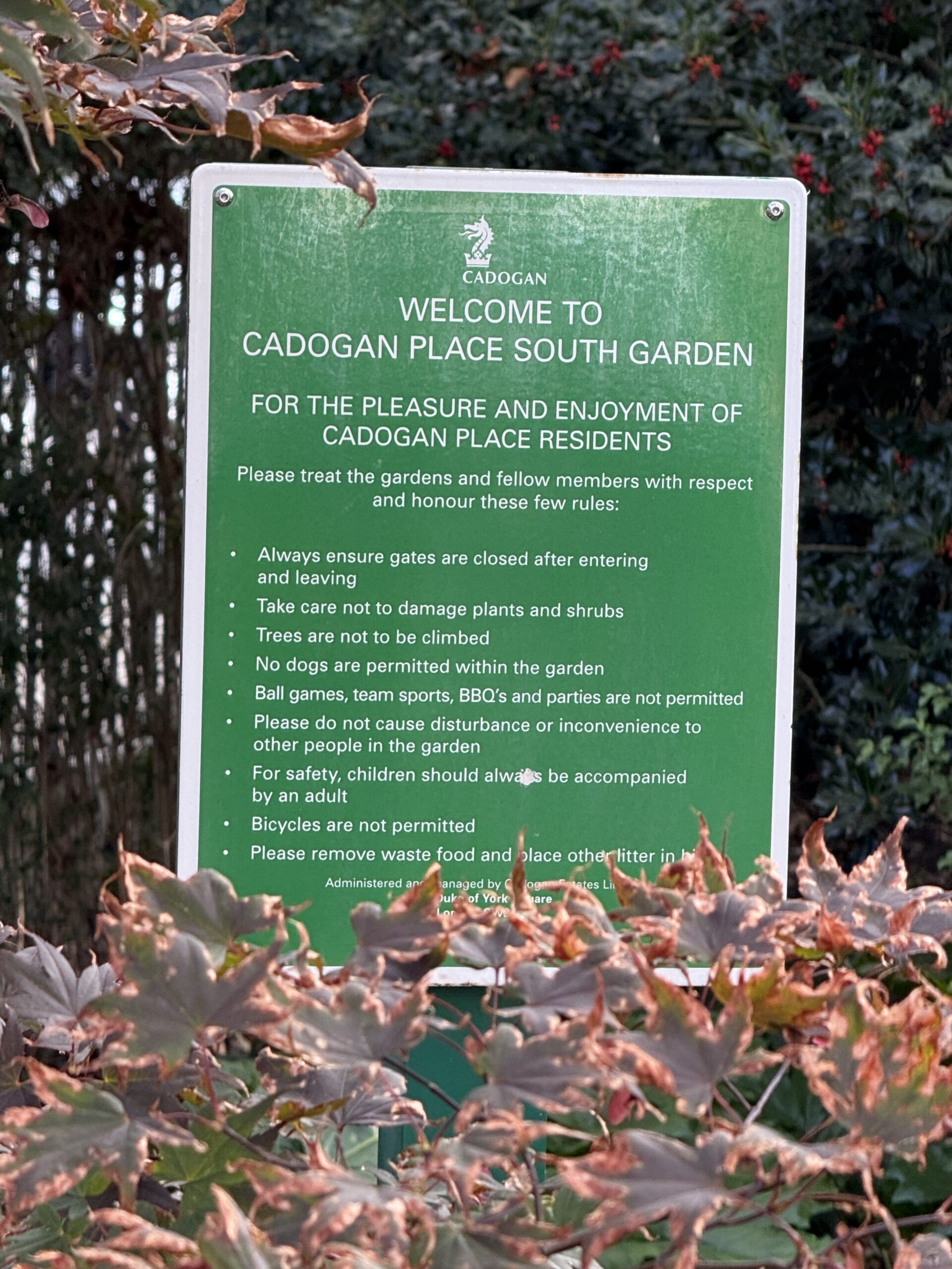 On Sloane Street in London, there are two small private parks, Cadogan Place garden North & South, which has hard tennis courts.