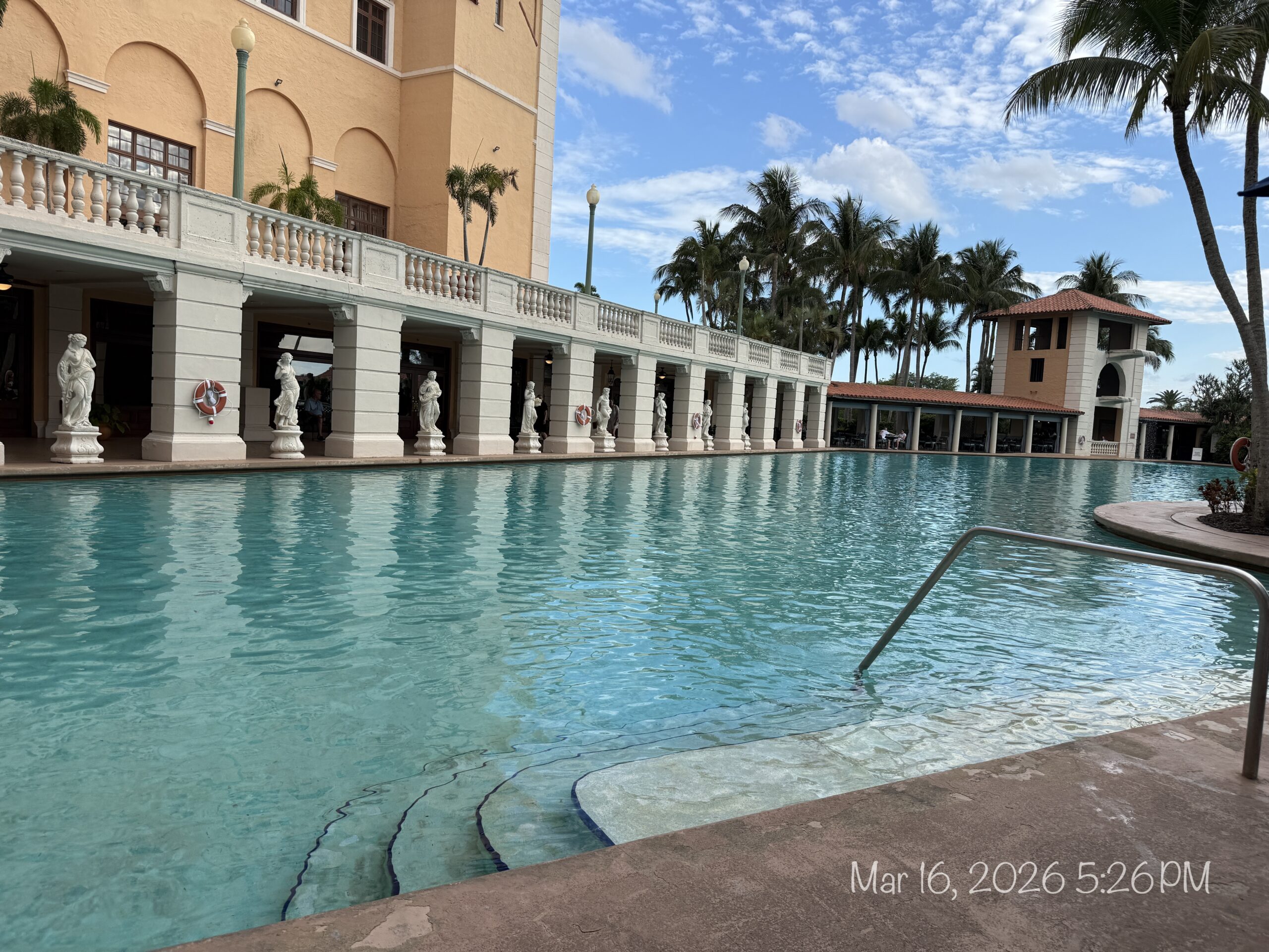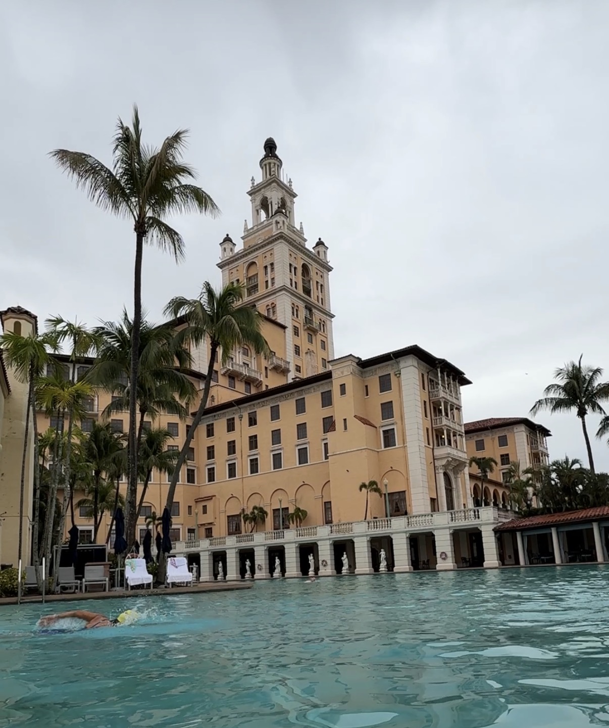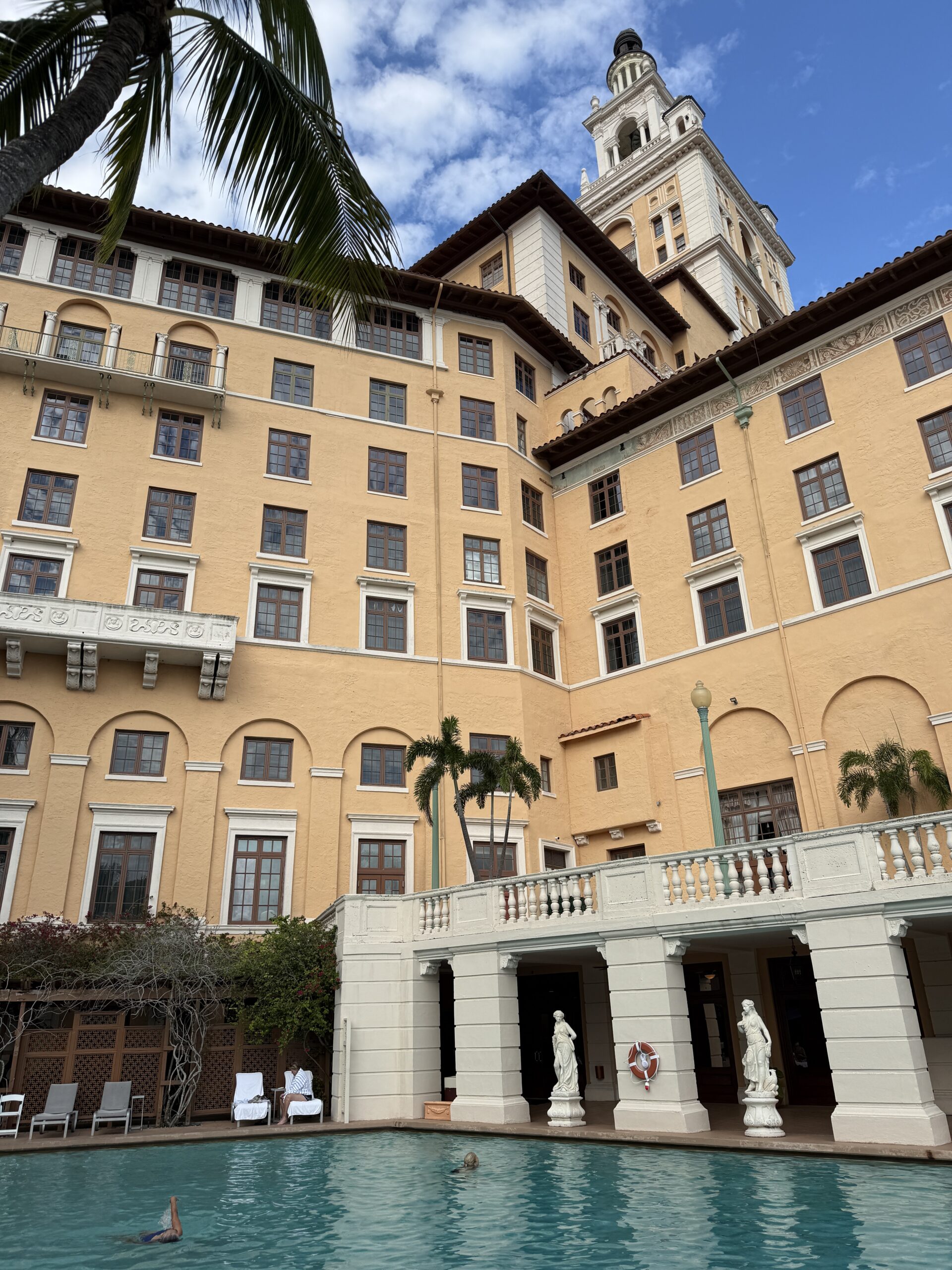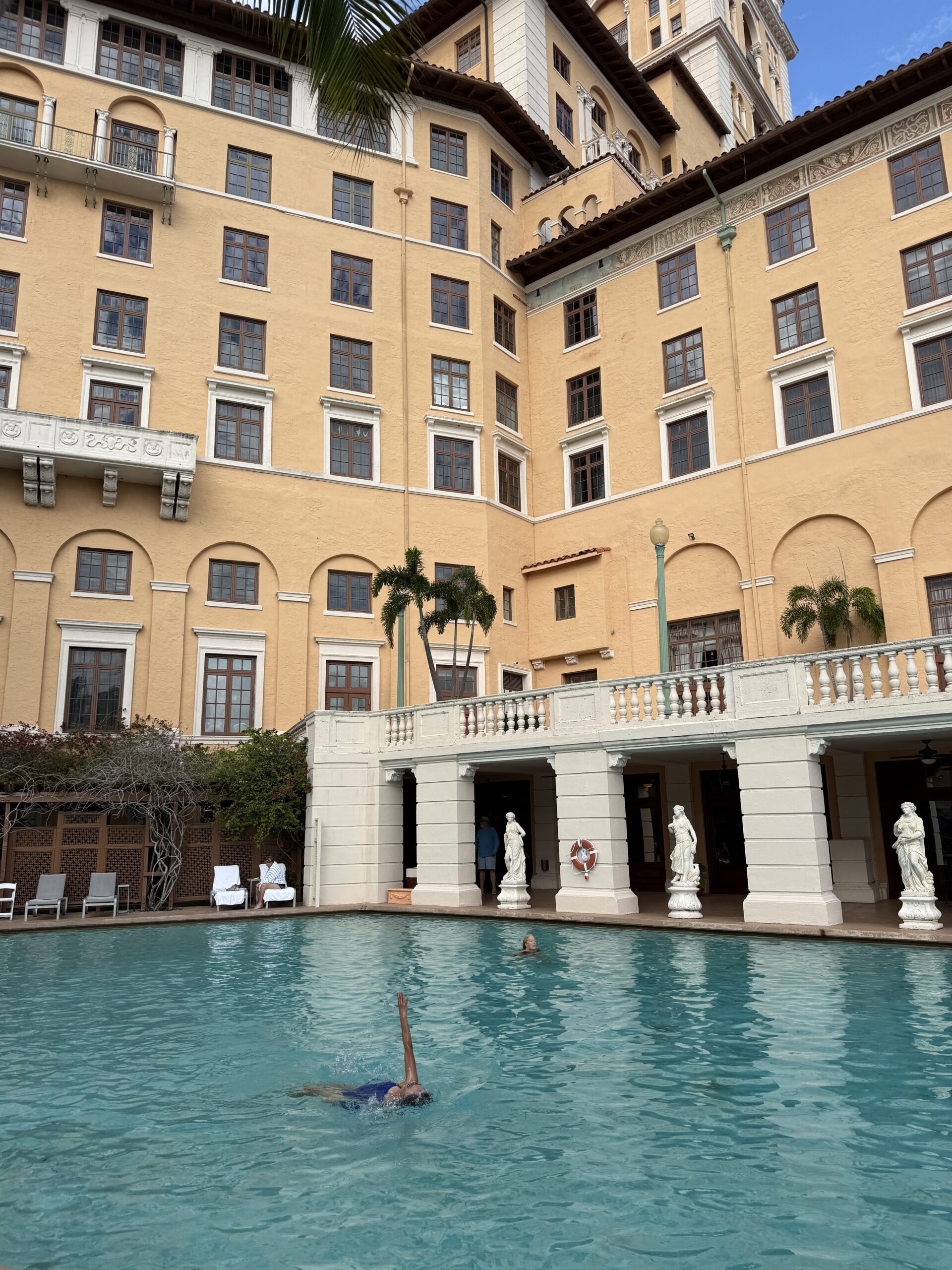 The beautiful, free form swimming pool at Biltmore Hotel is one of the largest in the US, I’m totally enjoying it!