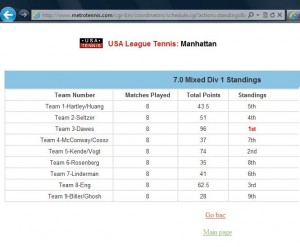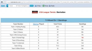 This season we only have 8 matches – very short – but with two rescheduled 3Ds, it seemed long. We played our 8th match last night, without much fanfare because we’re the third, made into the playoff regardless of the out come of this match. However, our opponents had 43 pts, in 5th place was only half point behind the then 4th place team (43.5 pts). Winning half court would mean they’ll join the quarter final fun. And they did splendidly: