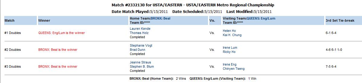 It was day 2 of USTA/Eastern Metro 2011 Regional Championship. We were playing Bronx.