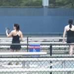 My mind began wandering around, trying to figure out why Court #15 next to us wasn’t being used by Deb: two girls vs a gal and a guy. … Thought I saw the girl in the blue dress was mingling with us .. It bothered me. So .. after couple of more games and finally I heard the tall gal grunt like a man. Oh, I got it, to show unity he dressed in sync with his partner.