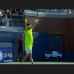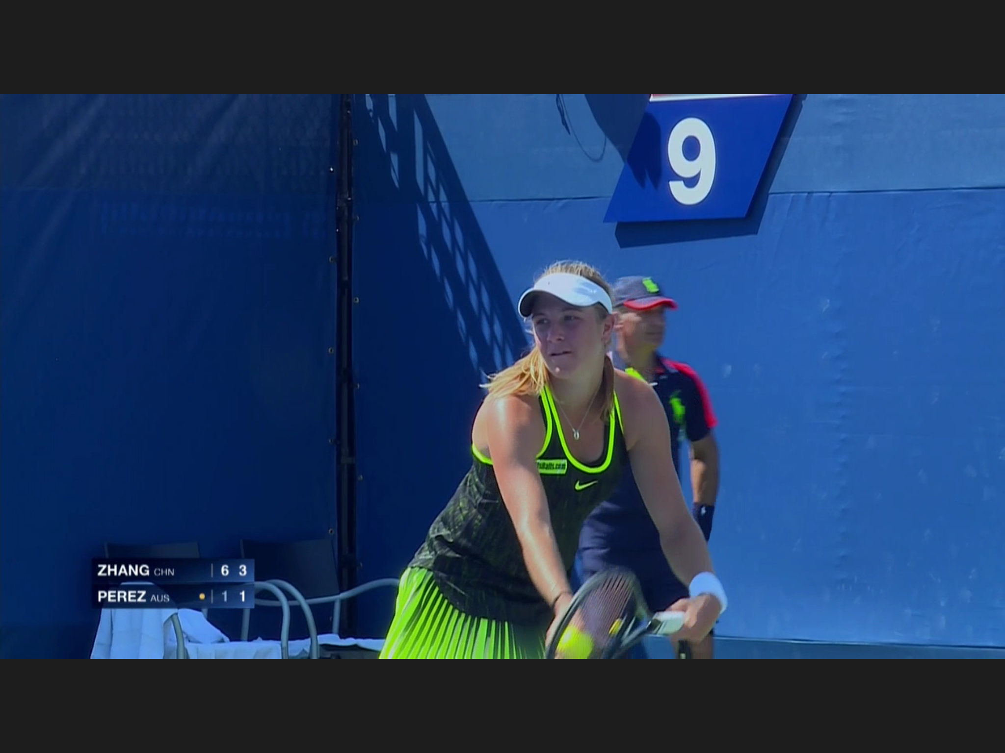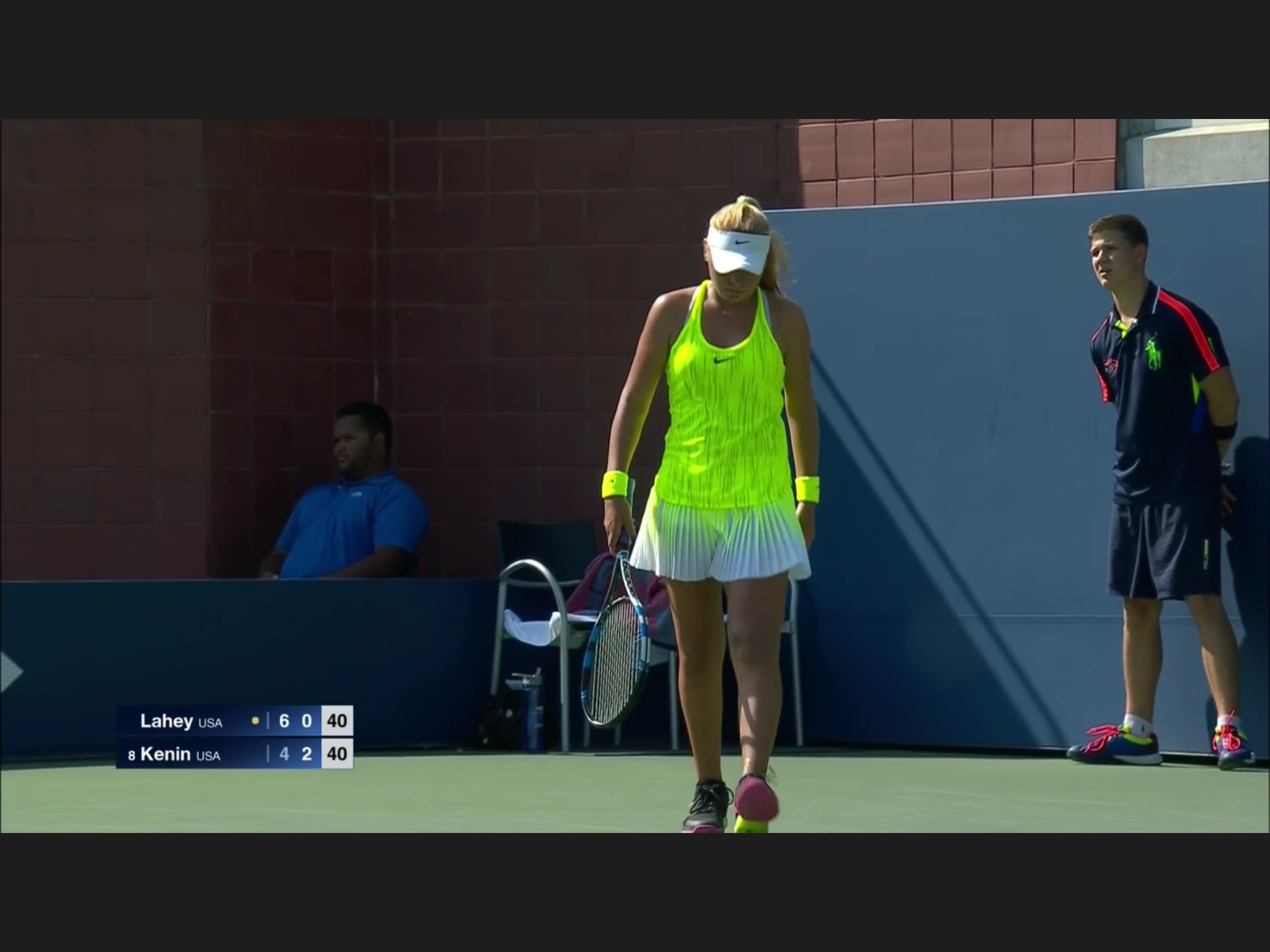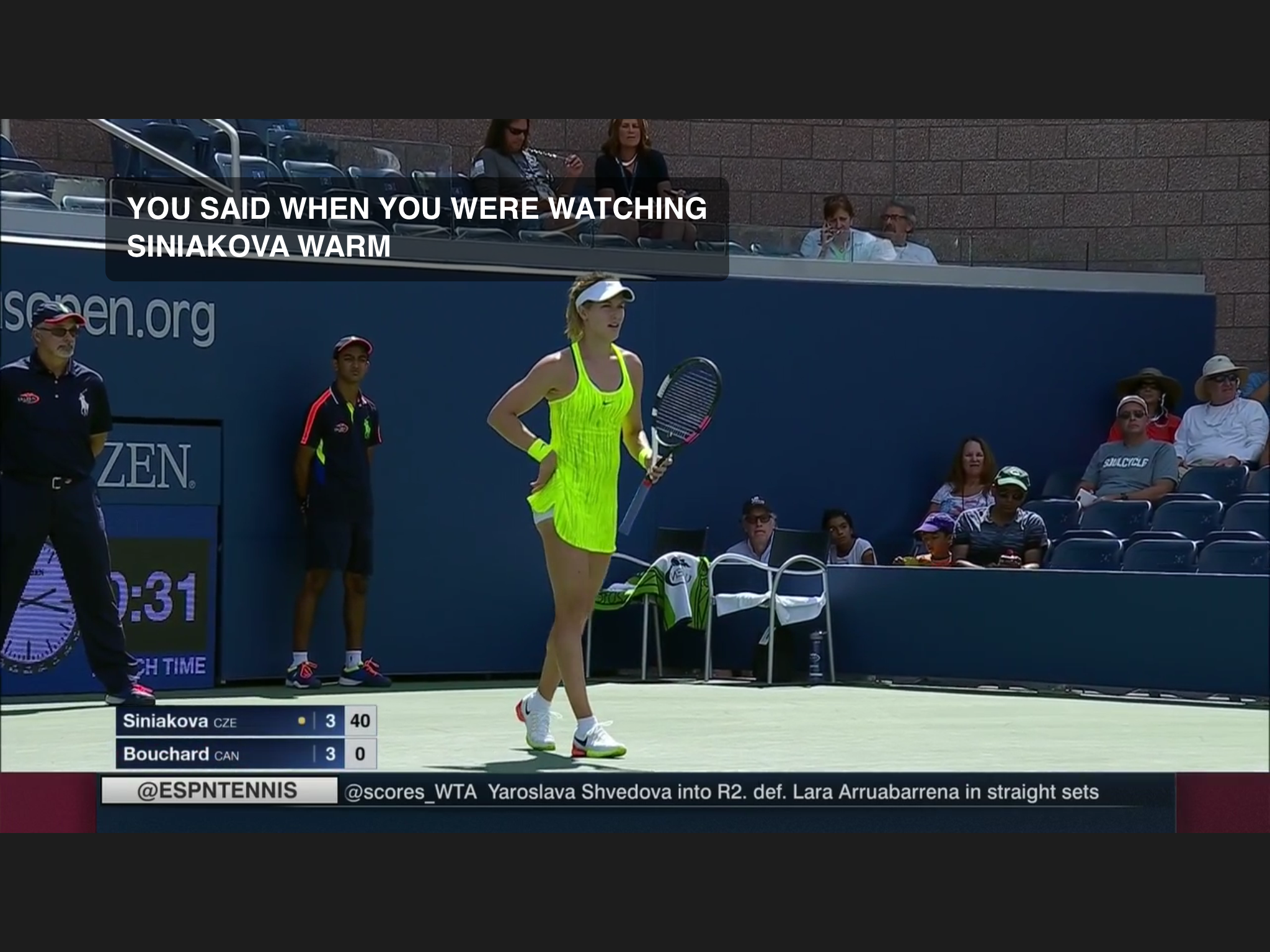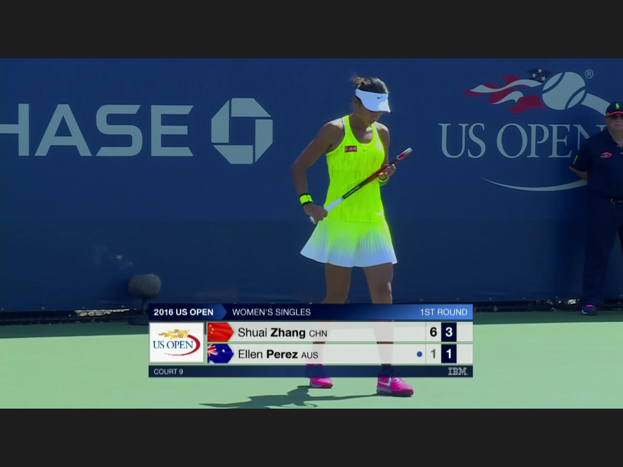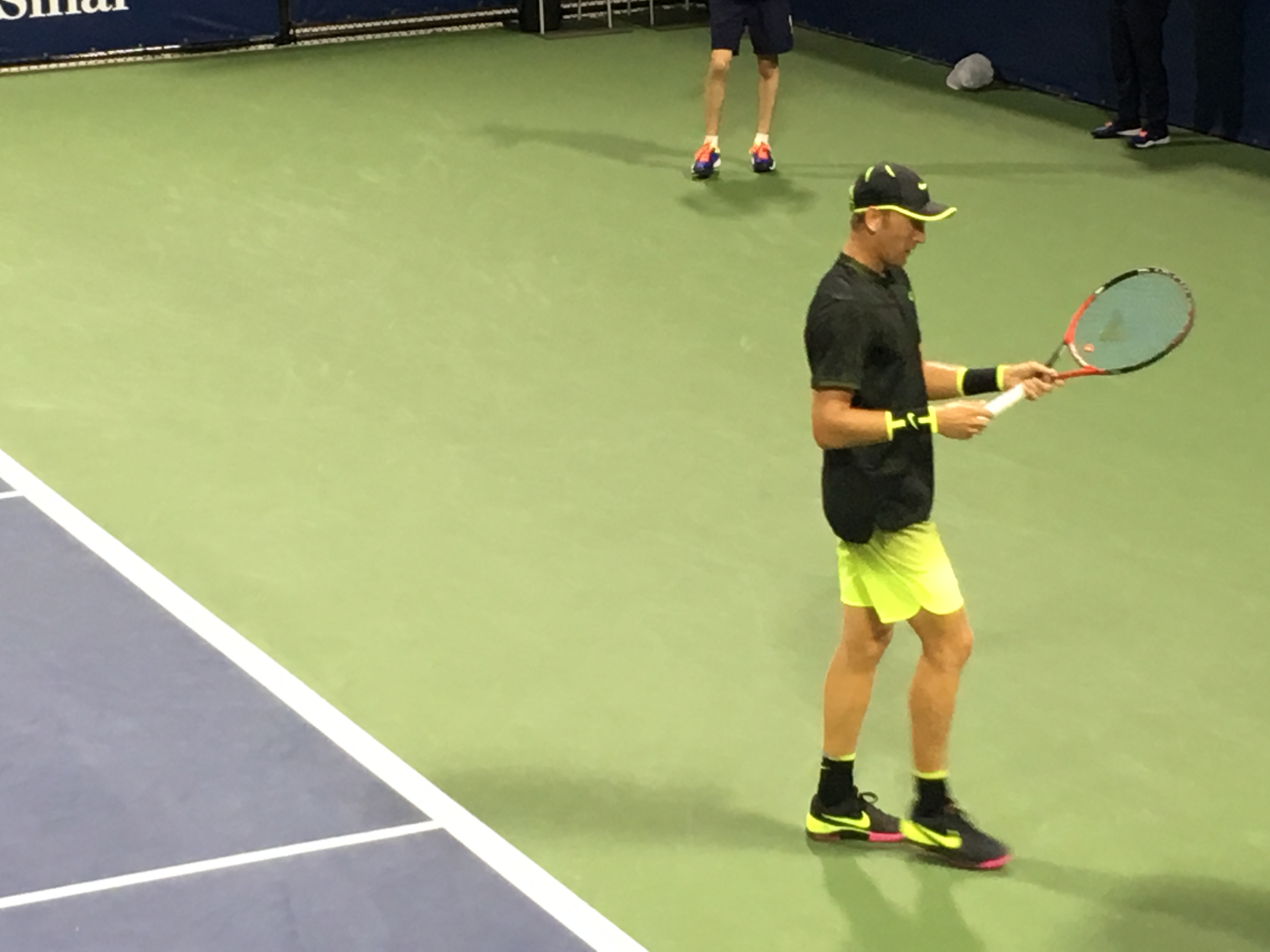 This has to be the most uniformed Open so far: every one is wearing the same neon/florescence color of yellow, men and women. At some singles matches the two players wearing identical outfit. Zhang Shuai is very tanned, still playing – she’s considering retirement before.